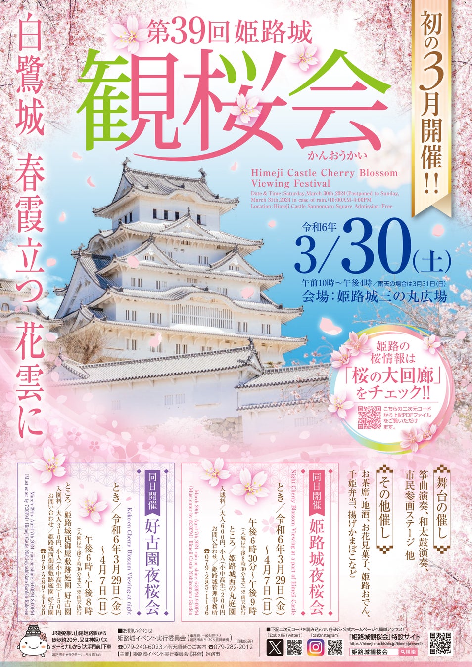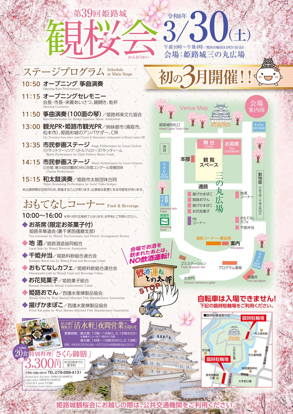 初の3月開催!2024年3月30日 兵庫県姫路市 姫路城三の丸広場「第39回姫路城観桜会」開催!