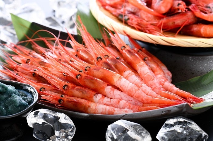 甘えびは、越前がにと並んで人気の高い日本海の珍味。三国漁港にも透き通るような紅色をした、たくさんの新鮮な甘えびが並んでいます。