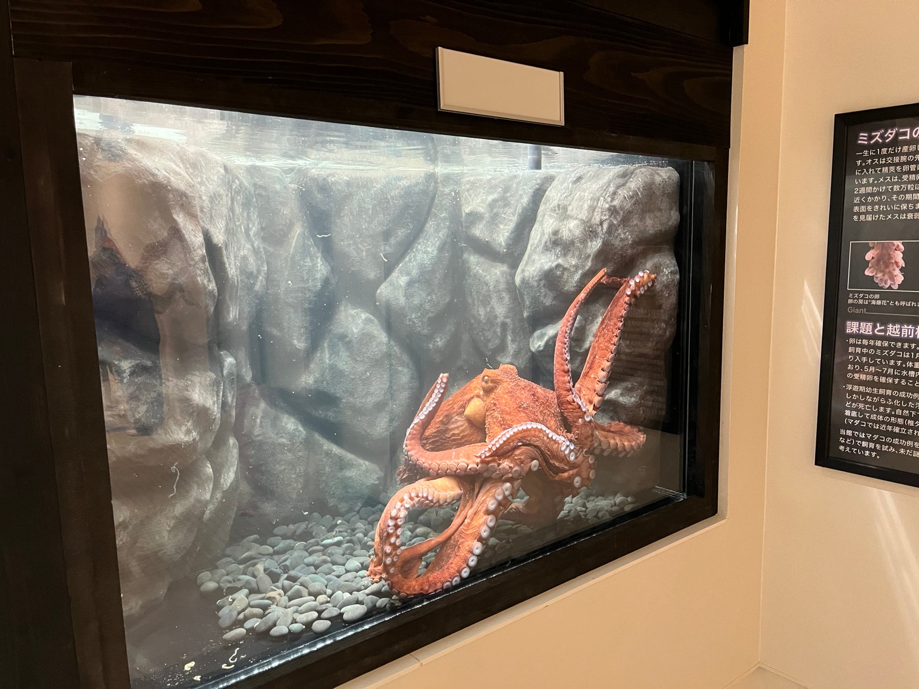 展示物:親ダコ約8匹、浮遊期幼生数十匹を水槽で展示