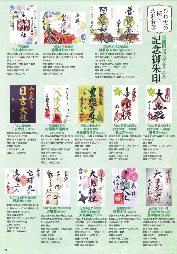 さらに3月15日(金)からはスマホ参加で豪華賞品に応募できるデジタルスタンプラリー「しきぶらりー」も開催。スタンプラリーは季節ごとに実施されますので、大津の四季の美しさとともにお楽しみください。