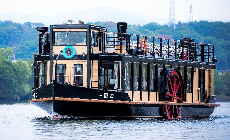 明治時代にびわ湖で活躍した蒸気船「一番丸」を復元した外輪汽船です。レトロでかわいい雰囲気が人気で、歴史と文化あふれる石山・瀬田川の風景に溶け込みながら遊覧をしています。
