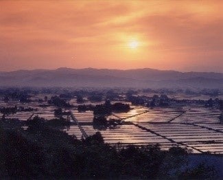 白川湖下流域の景観 田植え時期の「田園散居集落」