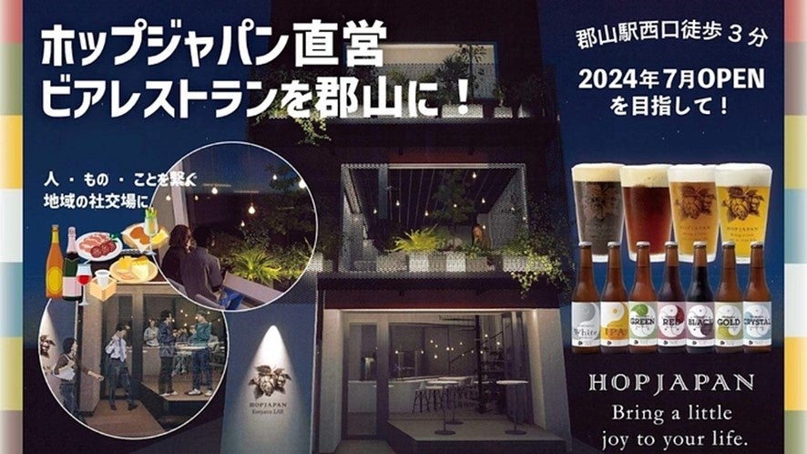 「福島県でクラフトビールを軸にして、産業の循環を作り、人×もの×ことを繋ぎ人々を笑顔にする」をビジョンに、クラフトビールの製造、販売を行っている株式会社ホップジャパン(福島県田村市)が、郡山駅前にクラフトビアレストランのオープンを目指し、クラウドファンディングに挑戦中です。