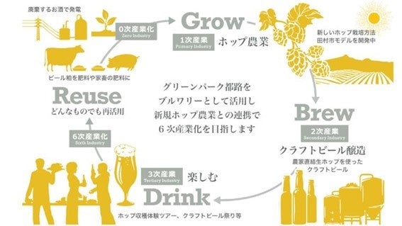 田村市都路町のアウトドア施設「グリーンパーク都路」に醸造所を設け、地域の農家と連携した循環型のホップ栽培、地域の特産品との積極的なコラボレーションなど、単なるクラフトビールの醸造所ではなく、地域の人、もの、ことを積極的に繋げている。