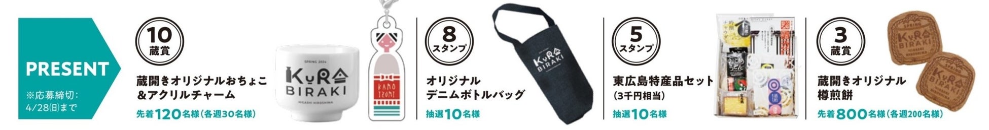 3スタンプ集めると、「オリジナル樽煎餅【非売品】」をプレゼント(先着800名様)!その他、スタンプ数に応じて、特産品セット(3千円相当)や蔵開きオリジナルグッズも抽選で当たります。