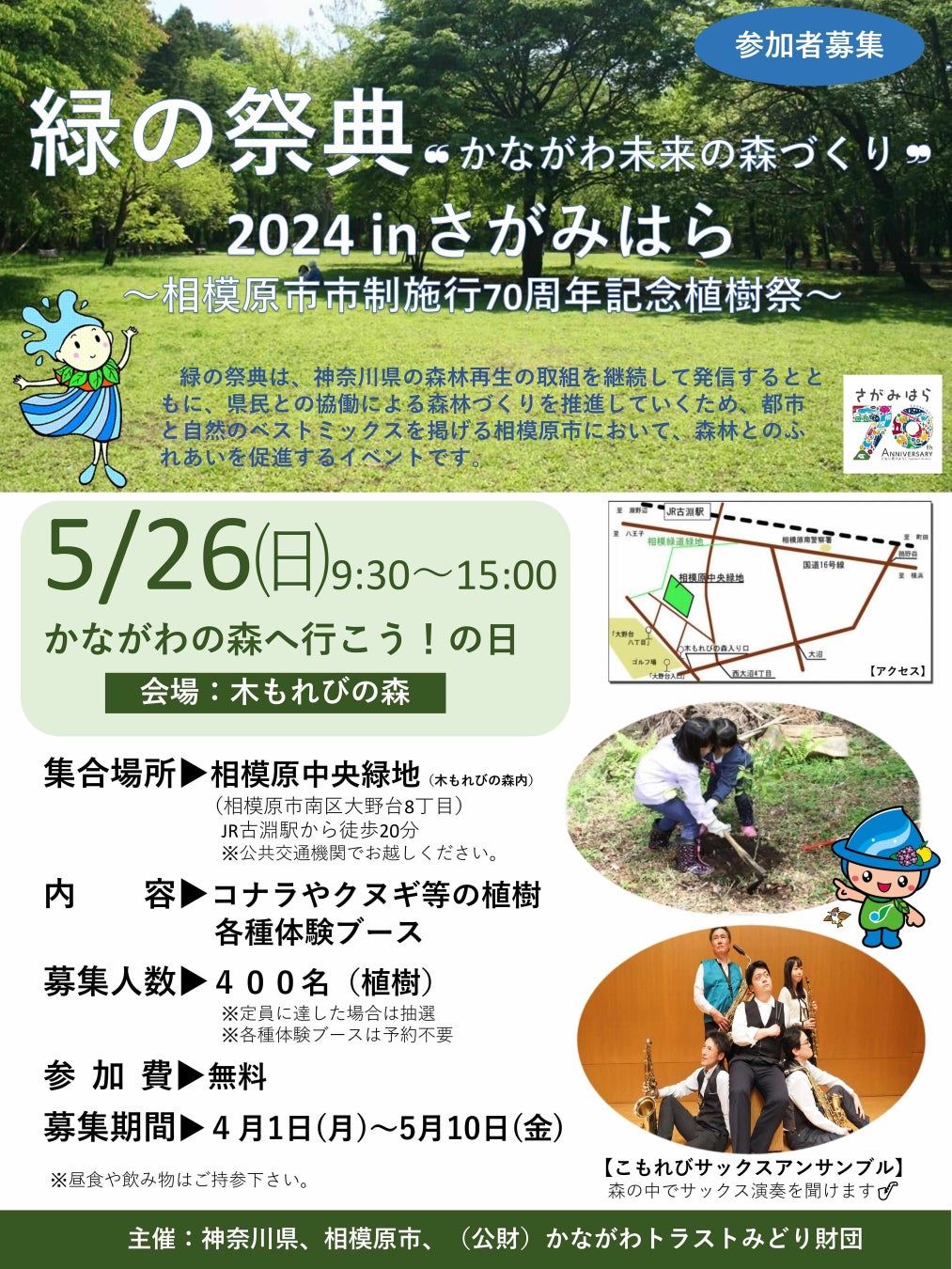 ・名称 : 緑の祭典“かながわ未来の森づくり”2024 inさがみはら ~相模原市市制施行70周年記念植樹祭~
