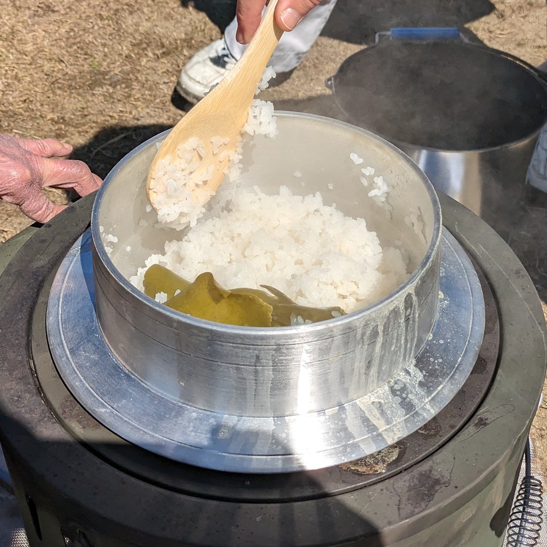 ④ご飯を炊きます(羽釜炊き名人の指導あり)