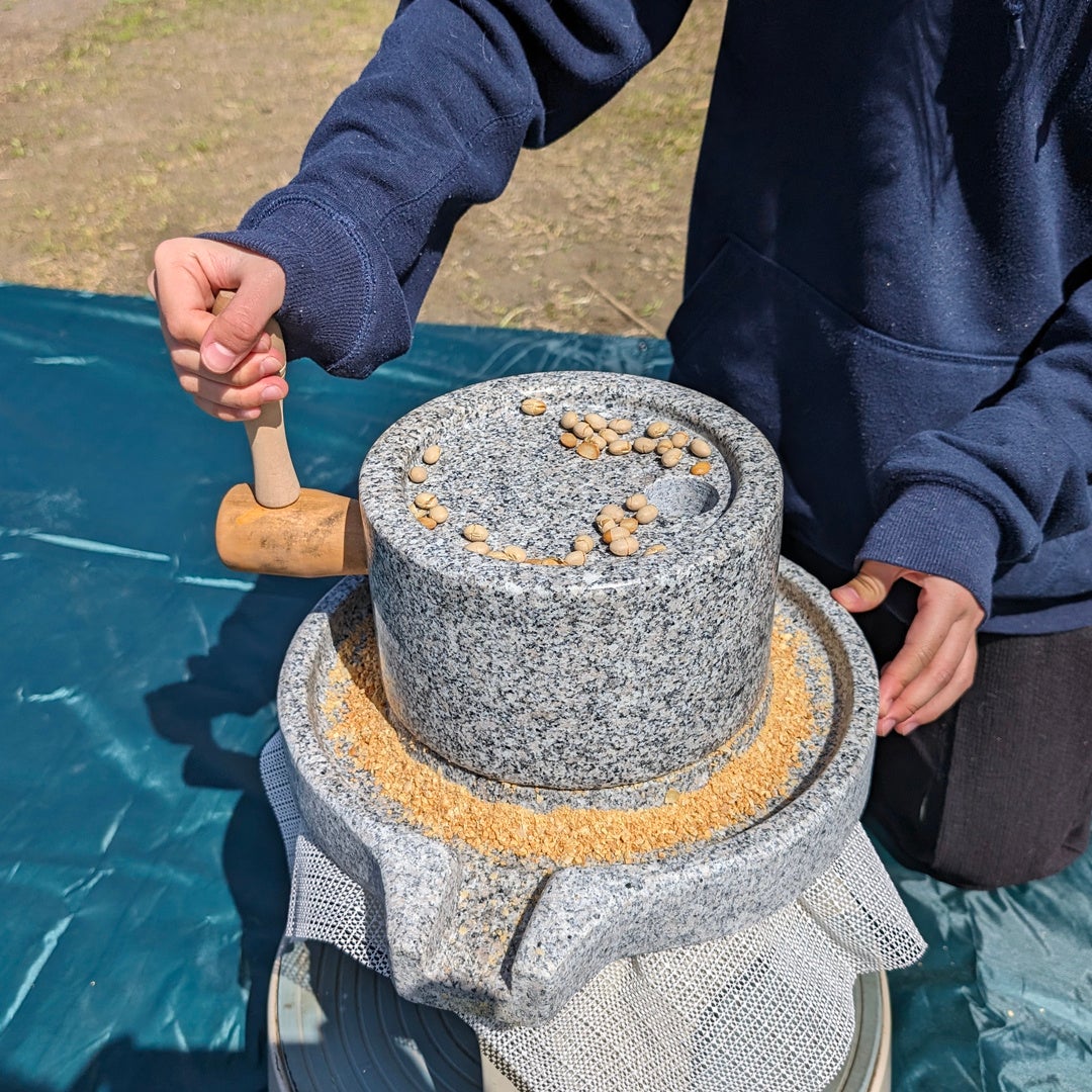 また、オプション体験として大豆を石臼でひき、きな粉を作る体験もできます。
