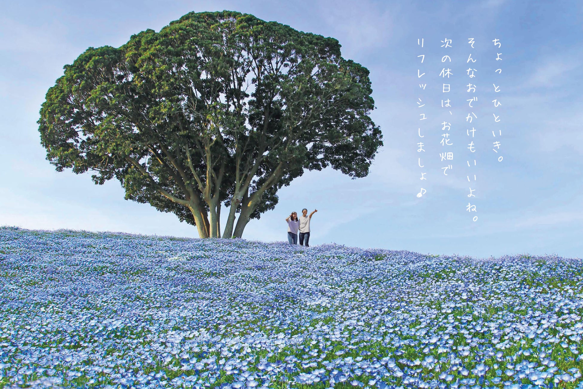 100万本のネモフィラが一面を爽やかな青色に彩る圧巻の花畑をぜひお楽しみに。