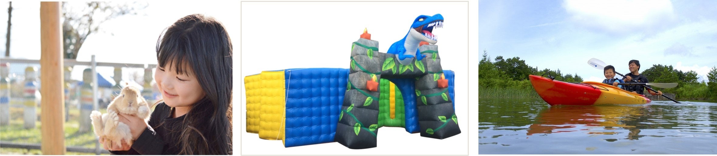 いのちと触れ合い、いきものの大切さを学ぶ「ふれあい動物園」や、バルーン遊具を設置した「ふわふわエリア」、親子で楽しめる「カヤック体験」などの体験型アクティビティをご用意し、スキージャム勝山の大自然に包まれながら、ご家族一緒に伸び伸びとお過ごしいただけるゴールデンウィーク期間限定イベントです。