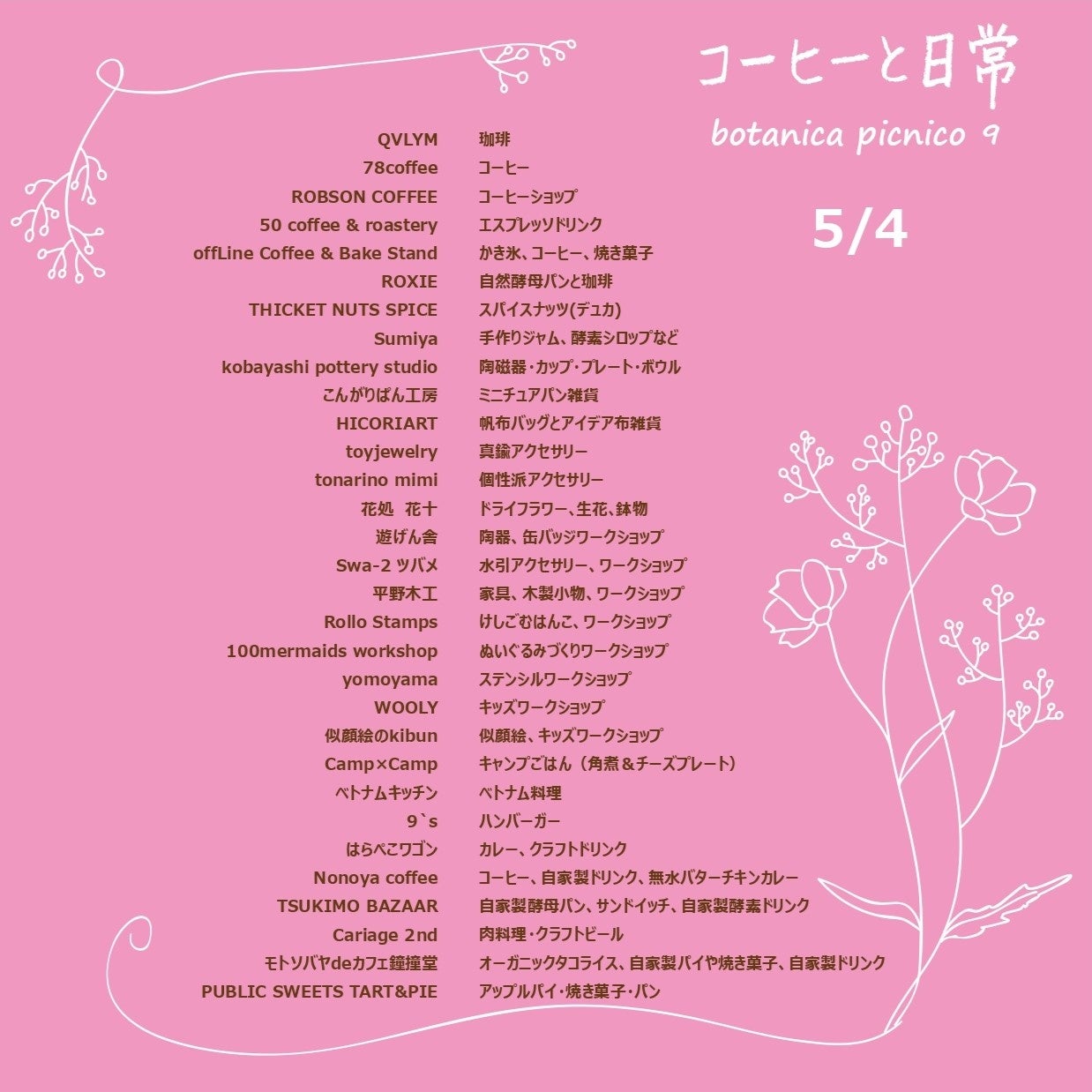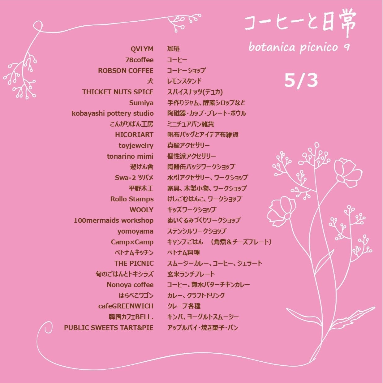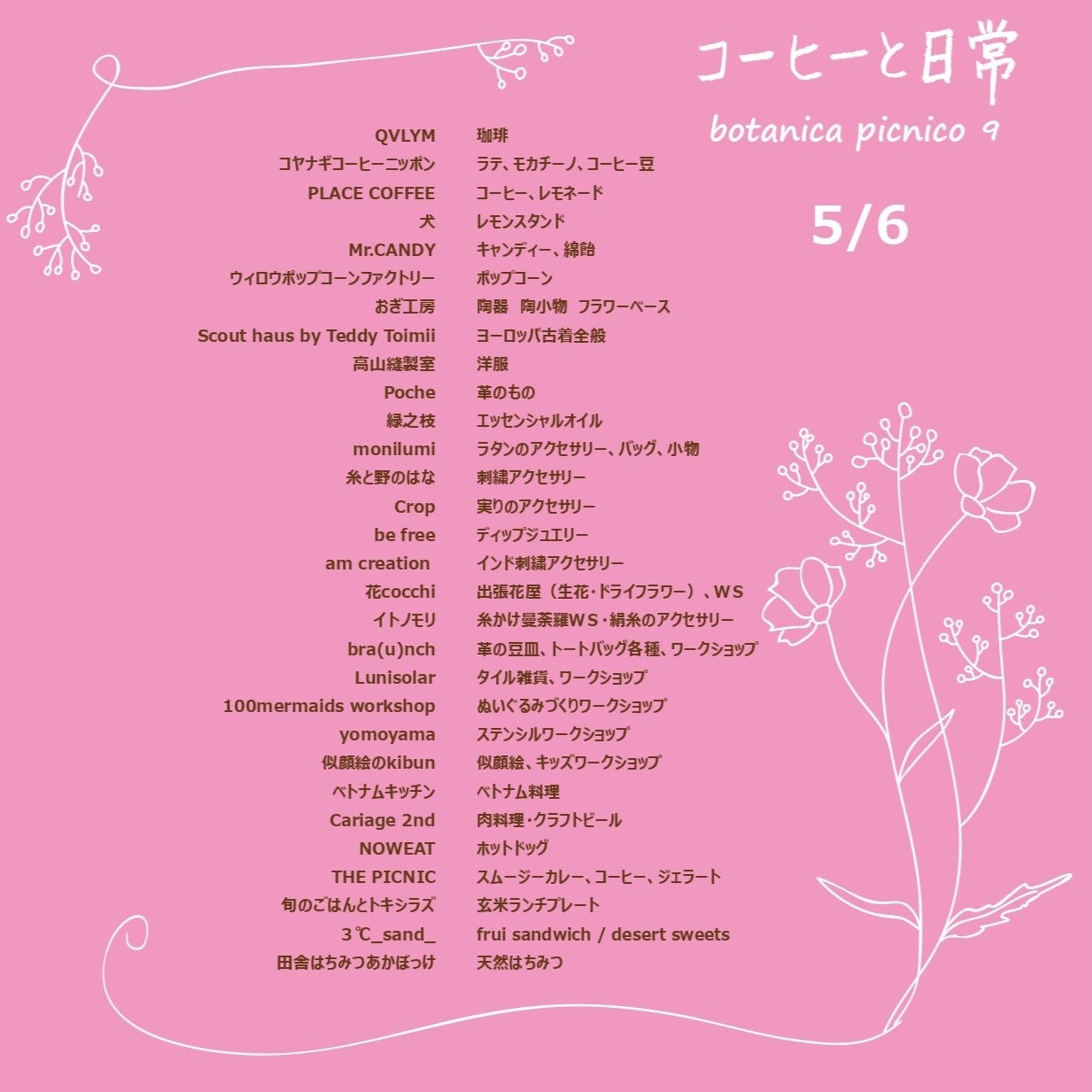 5/3~5/6には、「BOTANICAL PICNIC」も同時開催!厳選された珈琲とこだわりの食事やスイーツ、雑貨たちが集結する青空マーケットを是非お楽しみください!