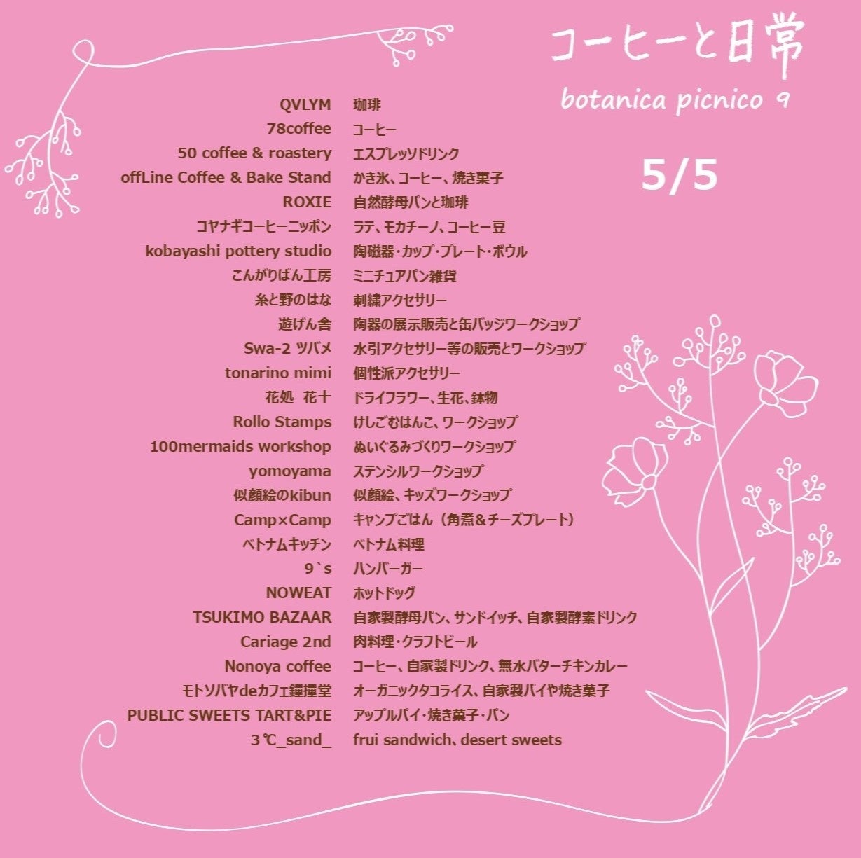 各日の出店情報は以下をご覧ください。
