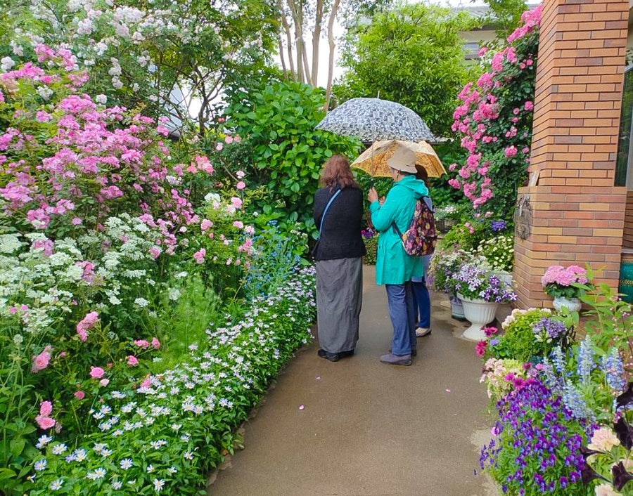 毎年、このオープンガーデンを楽しみにしている花結会の皆さん。