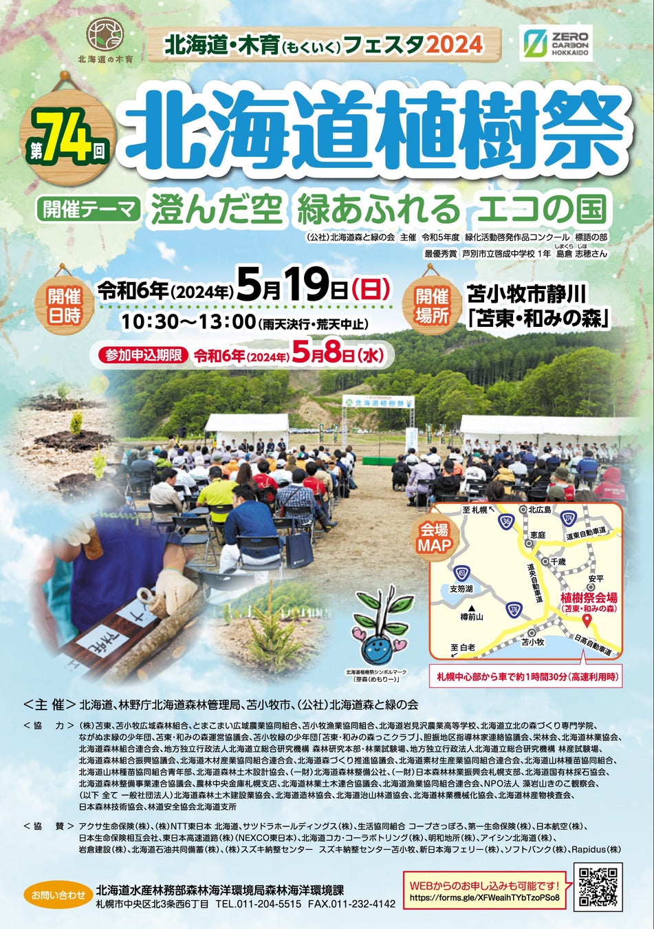 北海道では、北海道植樹の日・育樹の日の普及啓発を通じて、将来を担う若い世代をはじめとする道民の森林づくりに対する理解を深めるため、「北海道植樹祭」を昭和25年から開催しており、今年で74回目を迎えます。