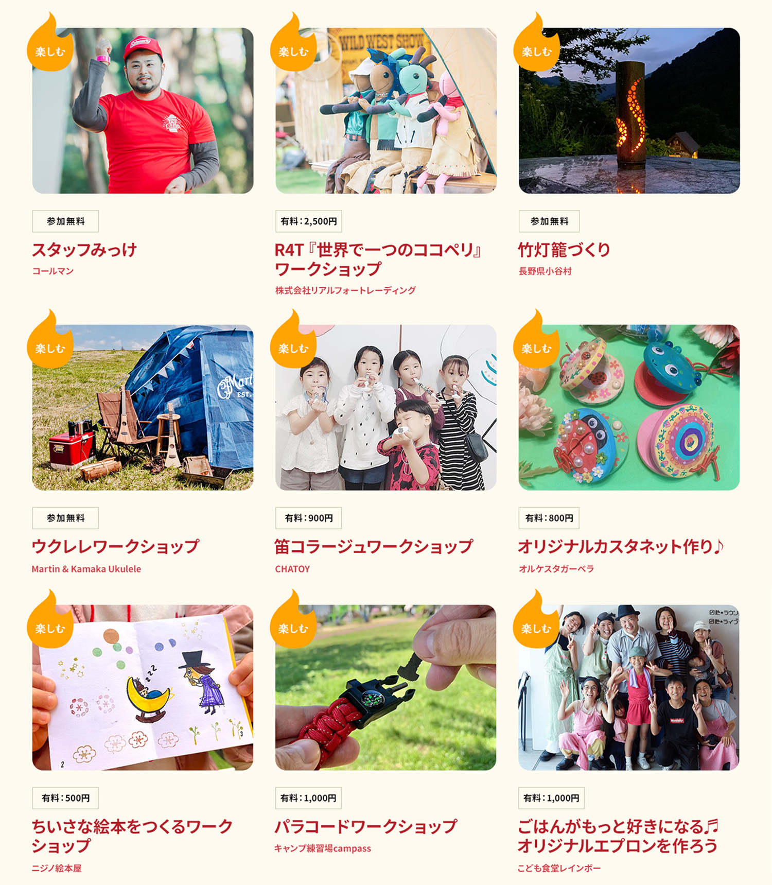 今年は、子どもたちはもちろん大人も夢中になれるキャンプの楽しさを感じていただくべく、「子どもと大人、どちらが心をワクワクできるか、いざ勝負」をテーマに、様々な体験型コンテンツをご用意しております。詳細は特設サイトをご覧ください。