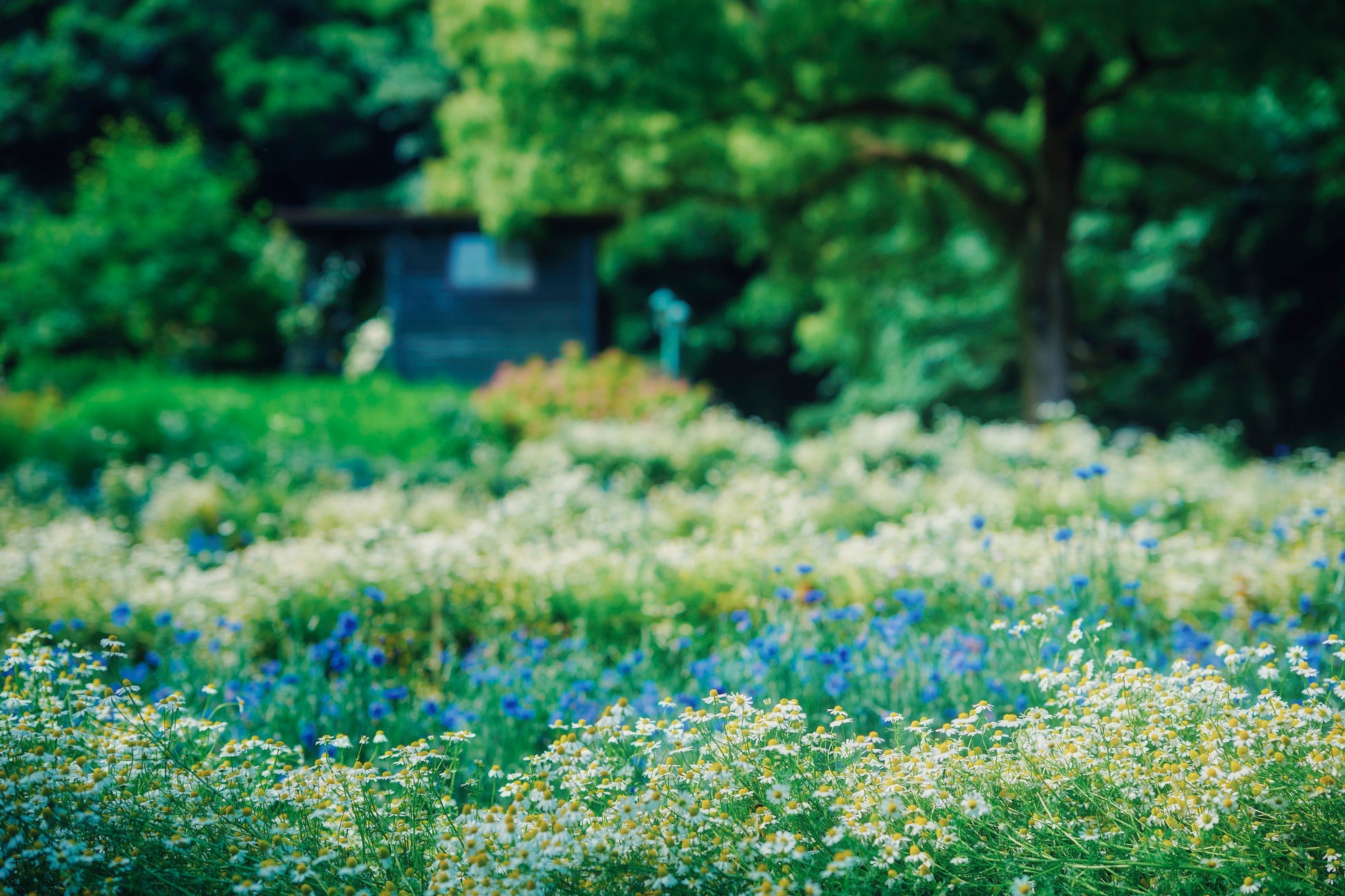 「四季の庭-よろこびの庭-」カモミールとコーンフラワーの可憐な段々畑