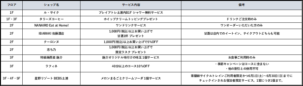 ・内 容:常磐線サイクルトレインご利用のお客様はプレイアトレ土浦内各ショップにて特典サービスを受けられます。