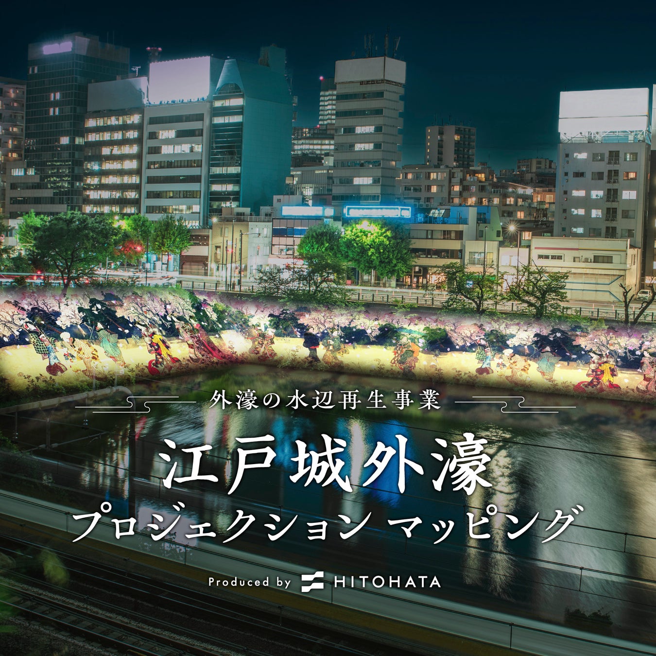 この催しは、東京都の「外濠の水辺再生事業」の理解促進活動の一環として実施される実証実験で、国指定史跡江戸城外堀跡・牛込濠の法面約100mにわたって、歌川広重の「名所江戸百景」に描かれた江戸の水辺の風景をはじめ、花見や祭りで賑わう江戸のまちなどの浮世絵をモチーフにしたデジタルアニメーションのほか、水辺の再生によってよみがえる外濠をイメージした錦鯉や花々などデジタルアートによるプロジェクションマッピング映像を投影します。