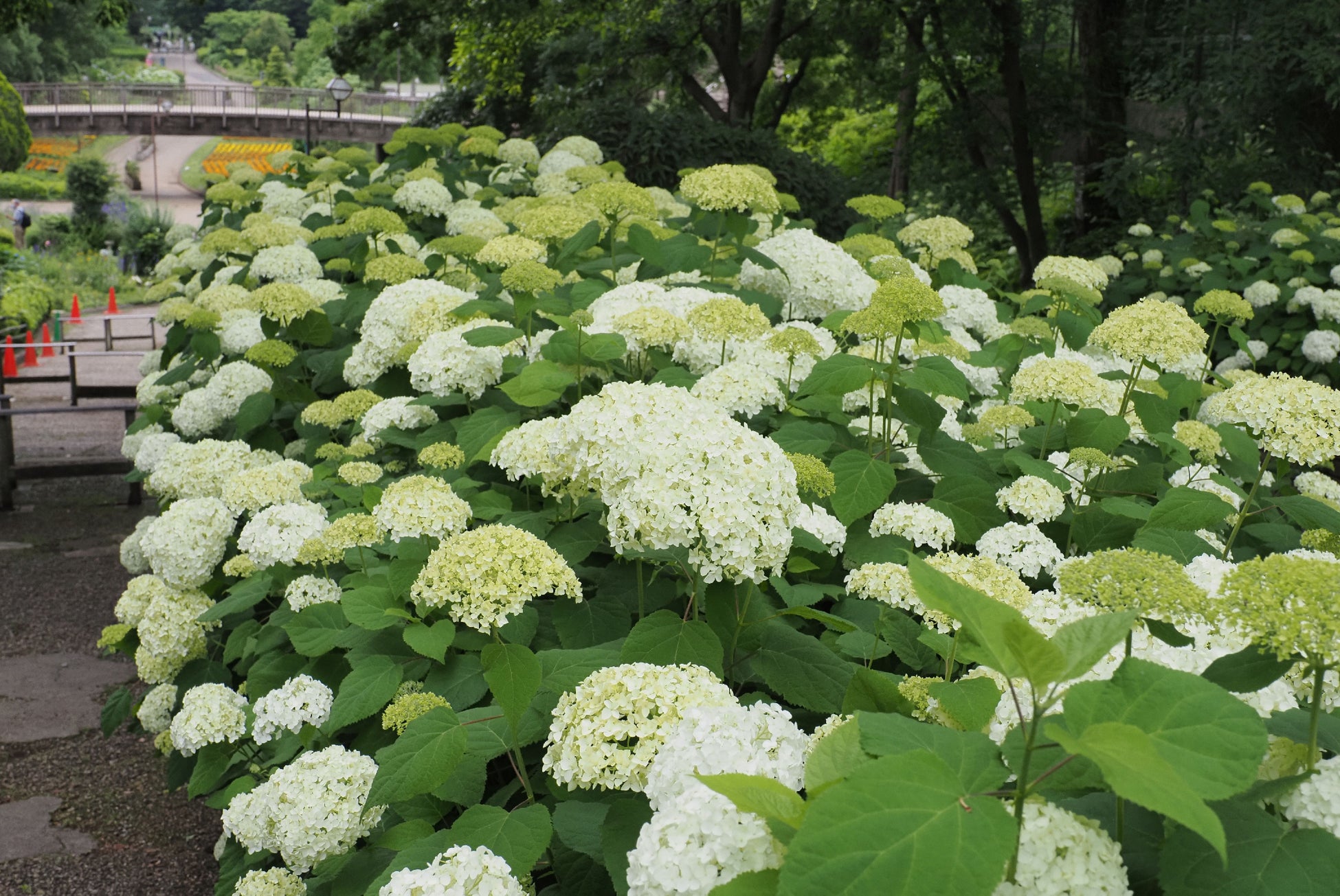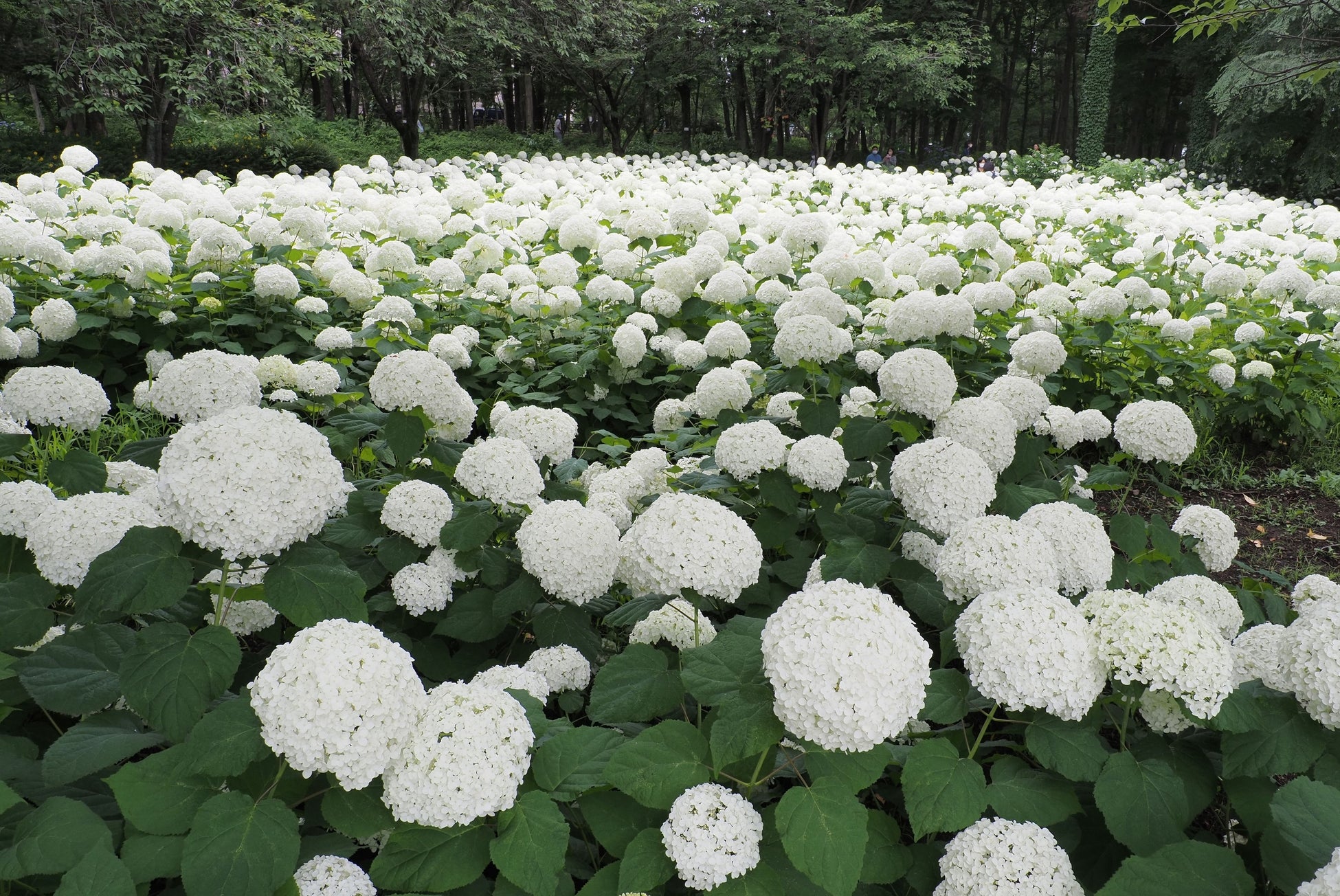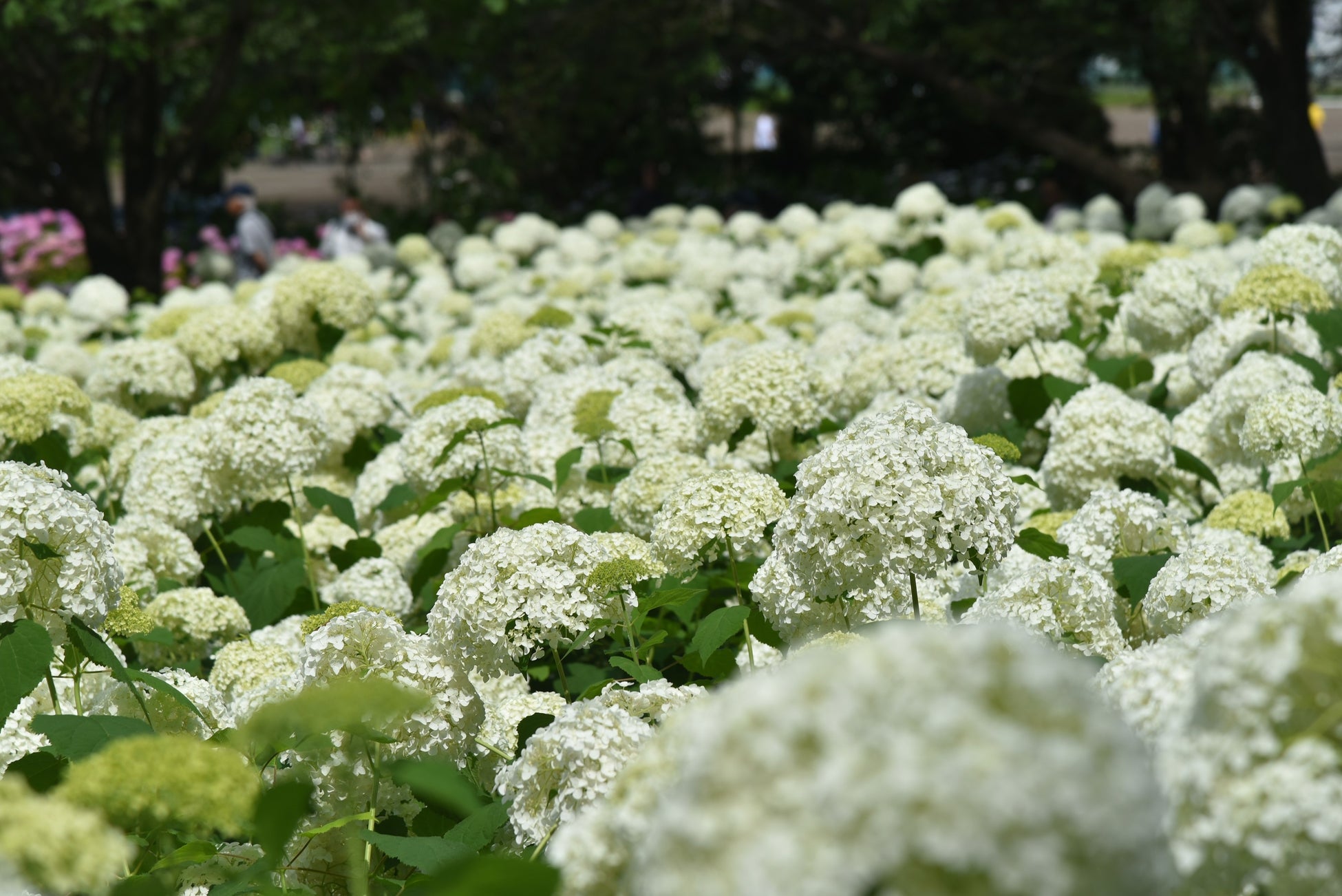 一面に広がる景観が圧巻のアナベルをはじめ、約200種類、1万株のアジサイが咲く、色彩豊かな公園にぜひお越しください。
