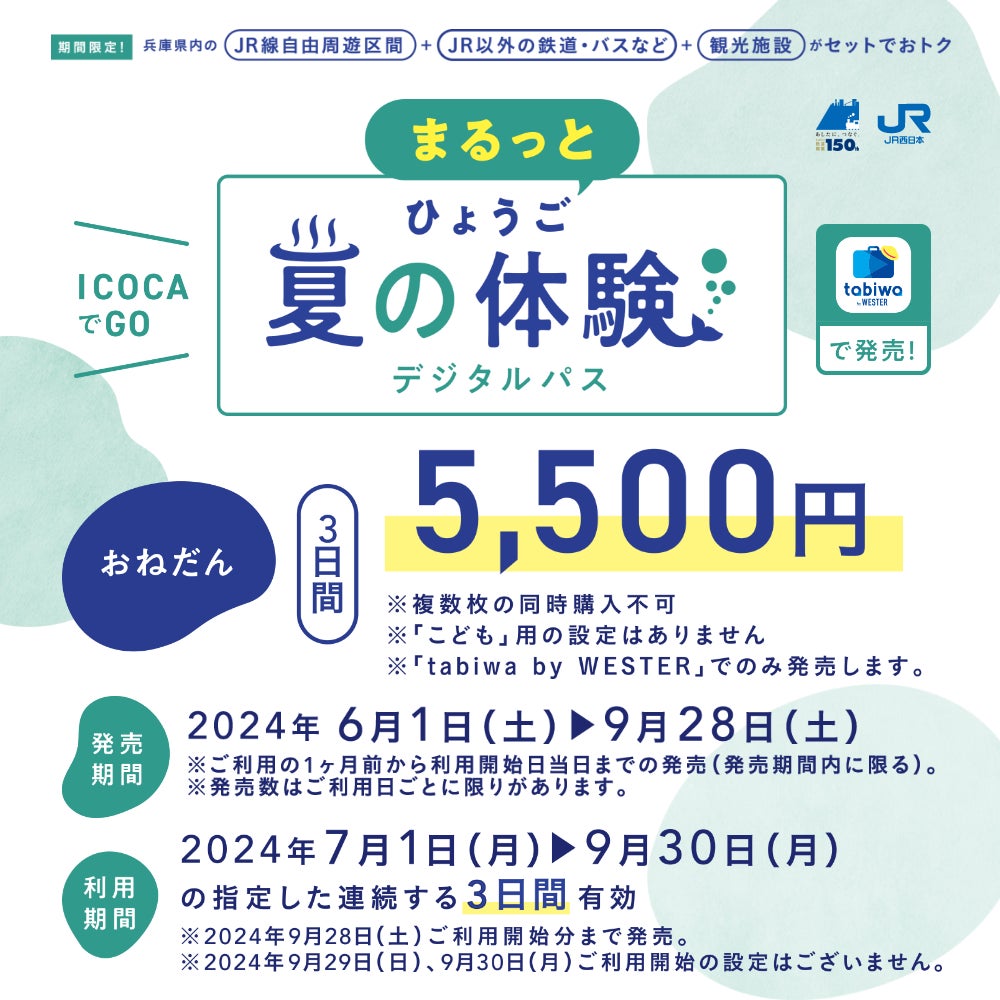 1.(ICOCAでGO)ひょうご夏の体験デジタルパス(3日間用)