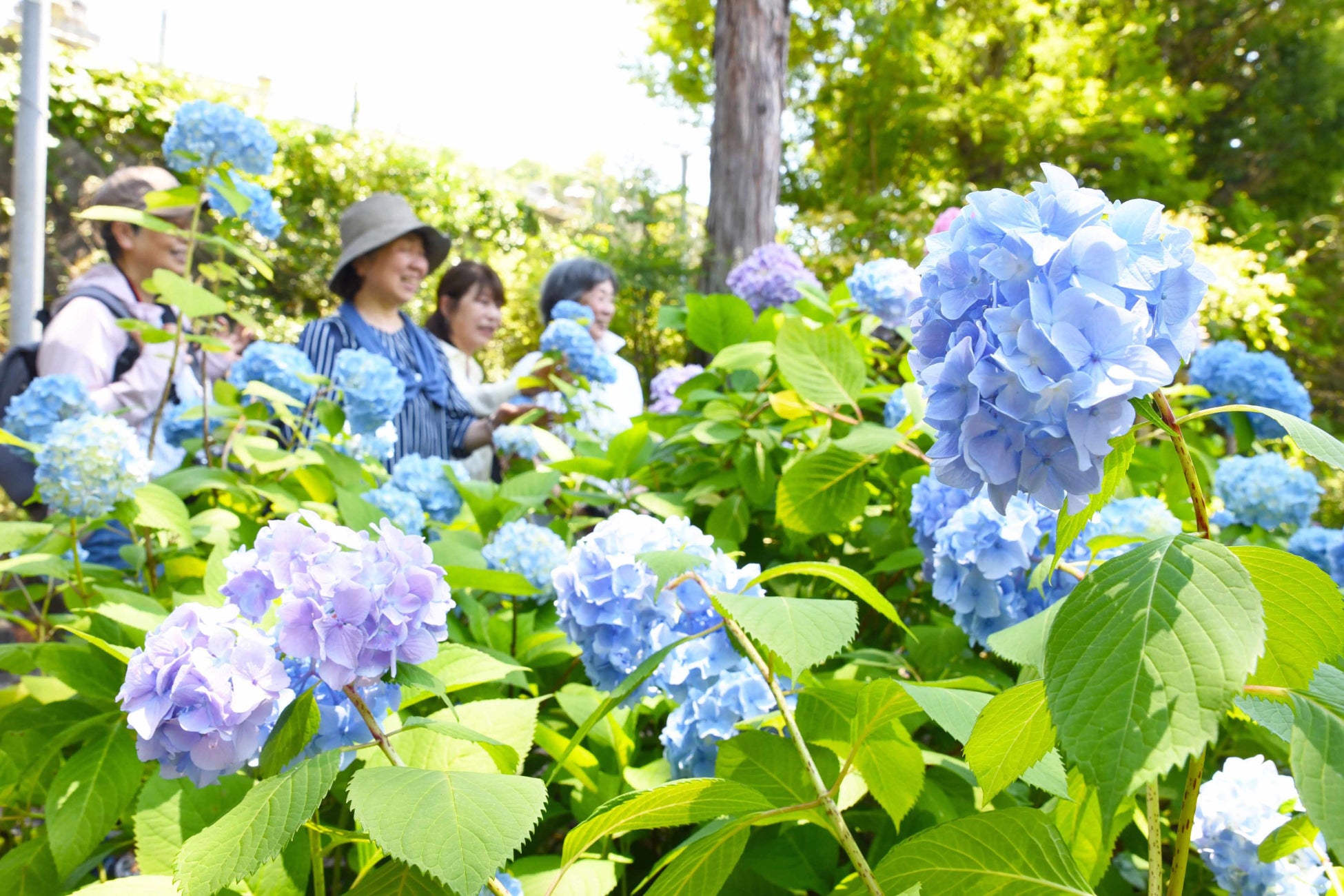 アジサイの咲くこの季節には、ハイキングのコースになるほか、俳句などで題材を拾うために、吟行で訪れる人も多くいます。