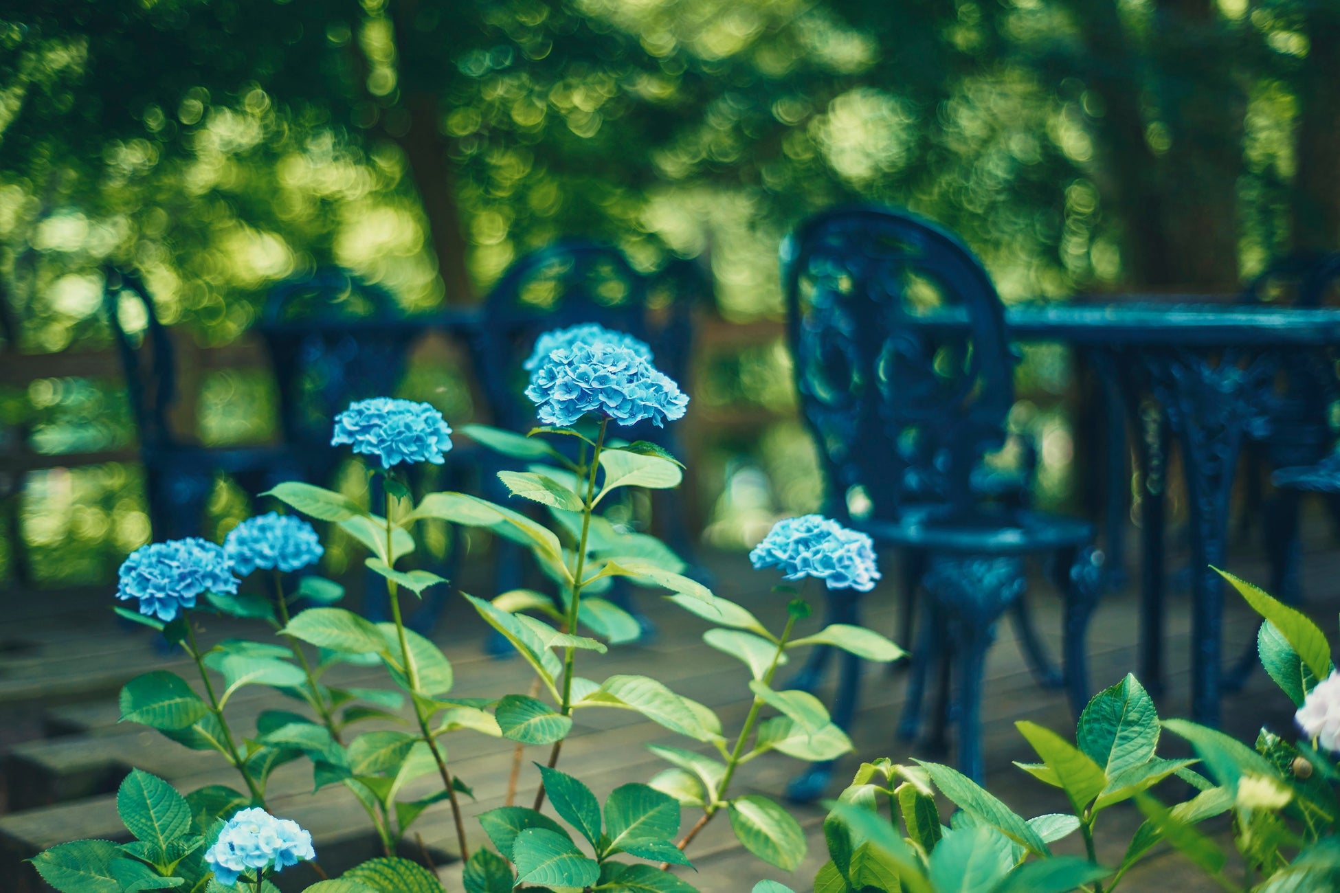 木漏れ日の中、ピクニックやハンモックなどでのんびりと過ごしながら、可憐なアジサイ鑑賞が出来る空間があるのも神戸布引ハーブ園ならではです