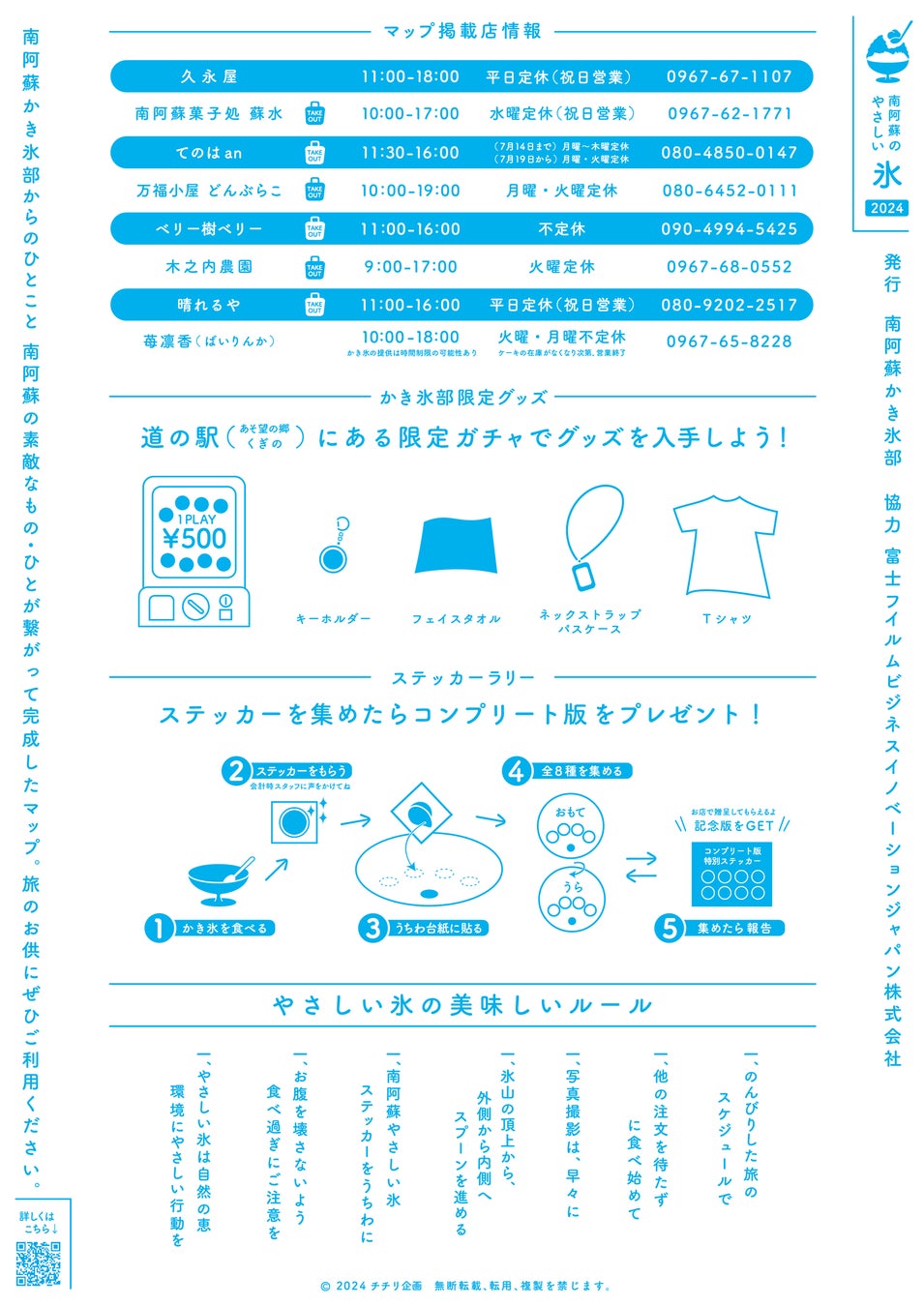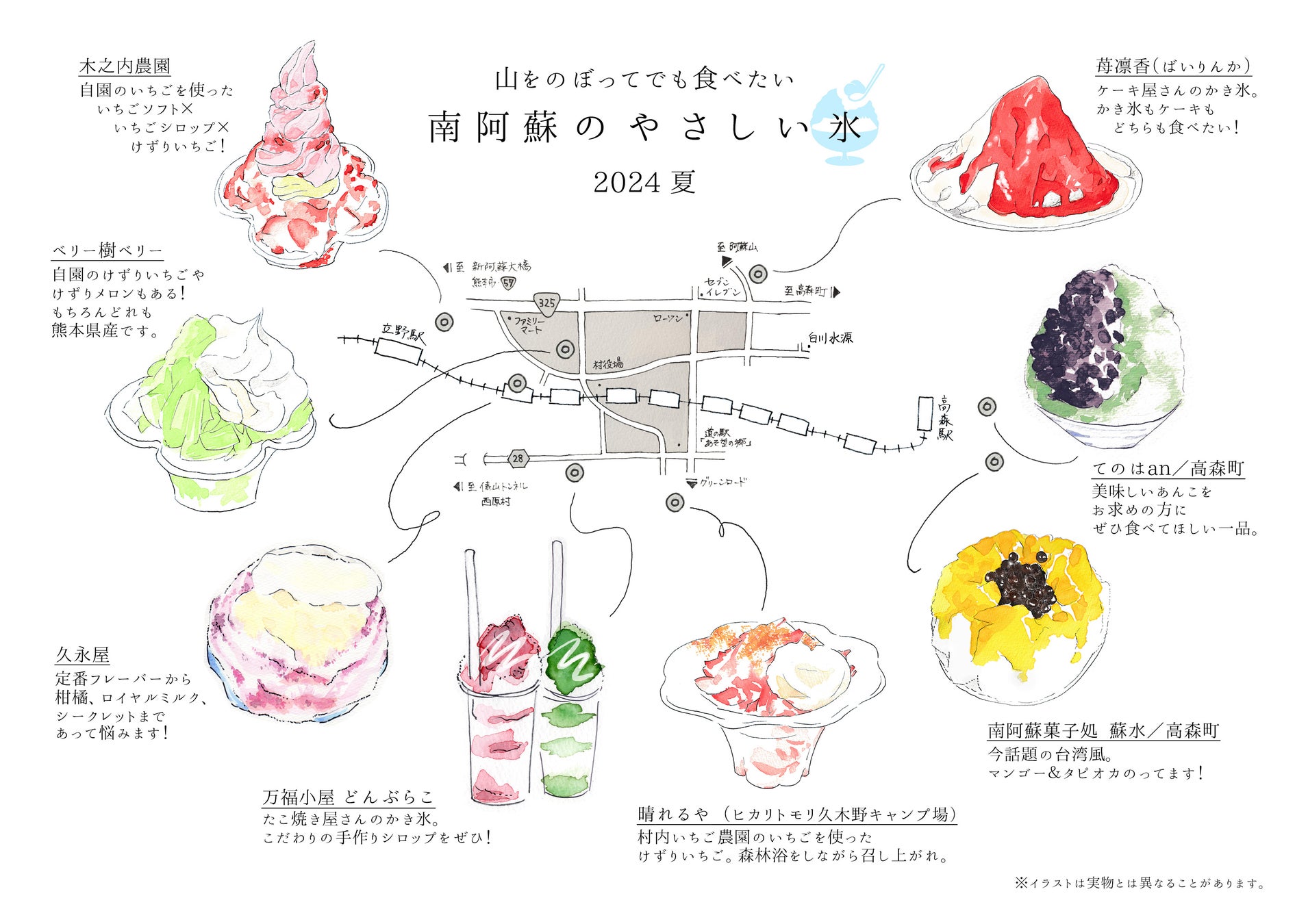 「かき氷マップ2024」は南阿蘇観光案内所や掲載店舗、WEBサイトにて順次配布・公開しますので、ぜひご確認ください。