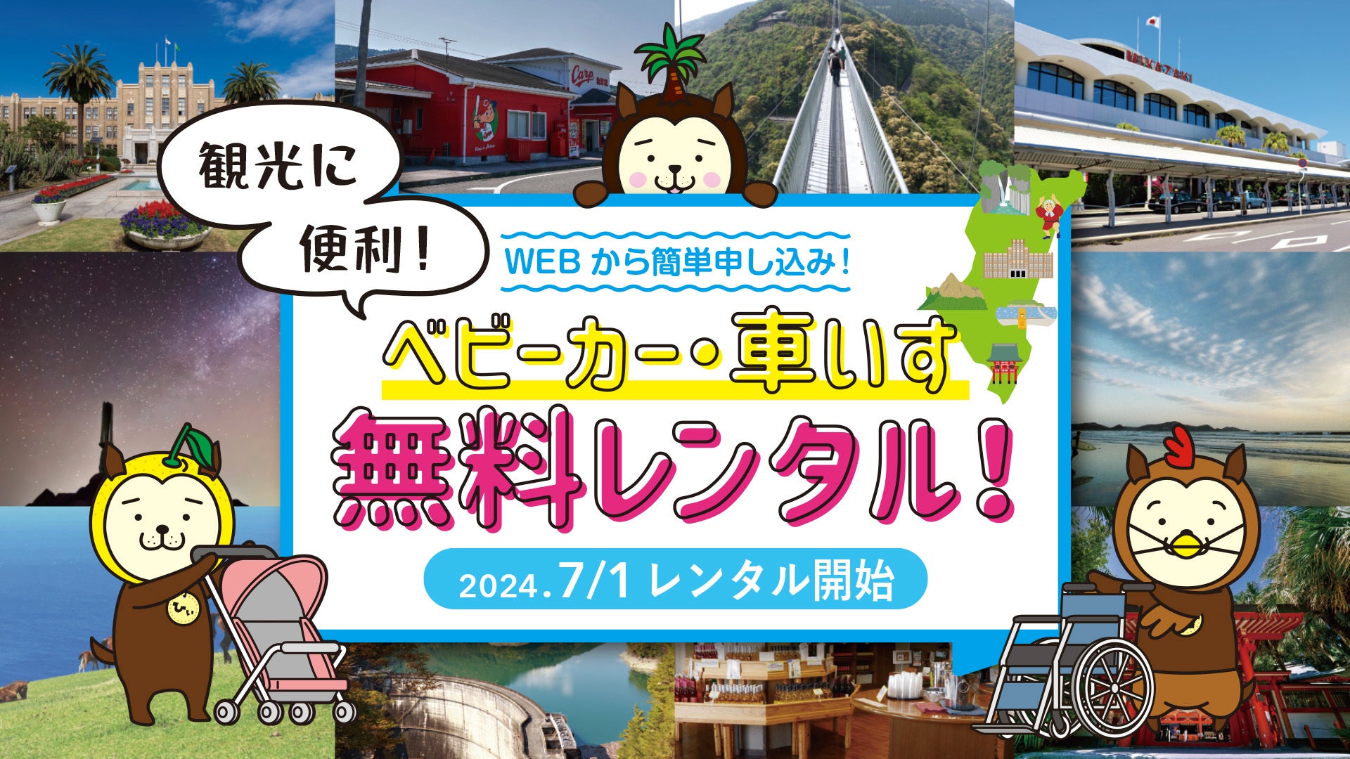 宮崎県観光協会では、観光客のみなさんにベビーカー・車いすを無償でレンタルするサービスを開始します。