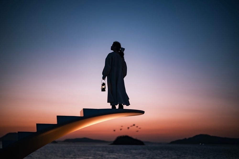 夜の水族館では、館内の水槽照明が深い青色に変化し、幻想的な雰囲気を演出します。夕暮れ時に開催するサンセットプログラムでは、黄金色に染まる空を背景にイルカのシルエットが浮かび上がる、まるで絵画のような景色をご覧いただけます。また、今春に新しく誕生したアートスポット『UMI to SORA』もライトアップし、昼間とは違った雰囲気を演出します。
