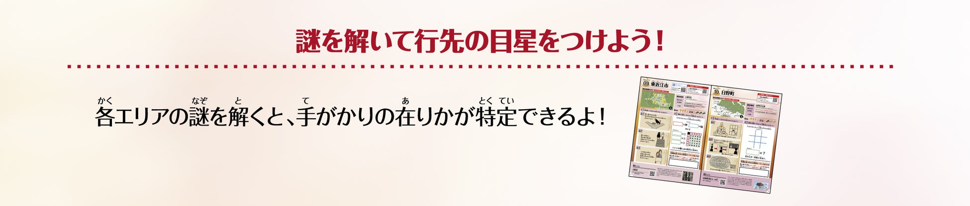 次に、見つけた 「手がかり」 を組み合わせてさらに謎を解き「宝箱」の在りかを特定します。