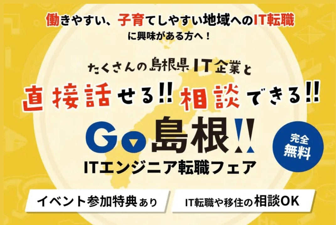 島根県内のIT企業が集結!「GO島根!ITエンジニア転職フェア」を2024年9月7日東京・新宿でリアル開催します!