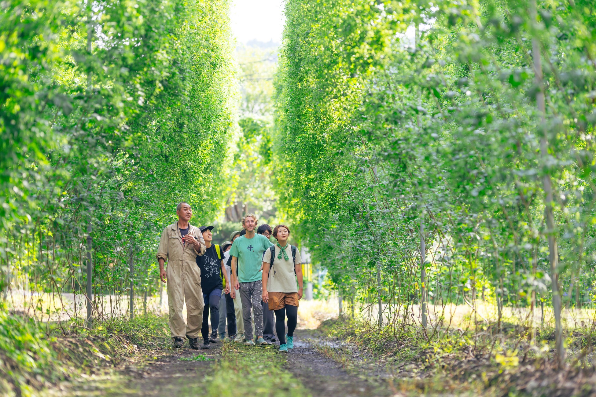 また、普段は入ることができないホップ畑のグリーンカーテンの中を歩く体験も!(※ホップ畑体験会は1日3回、各回20名。当日参加チケットは、当日抽選に当選した方のみが購入可能。ホップの摘み取りはご遠慮ください。