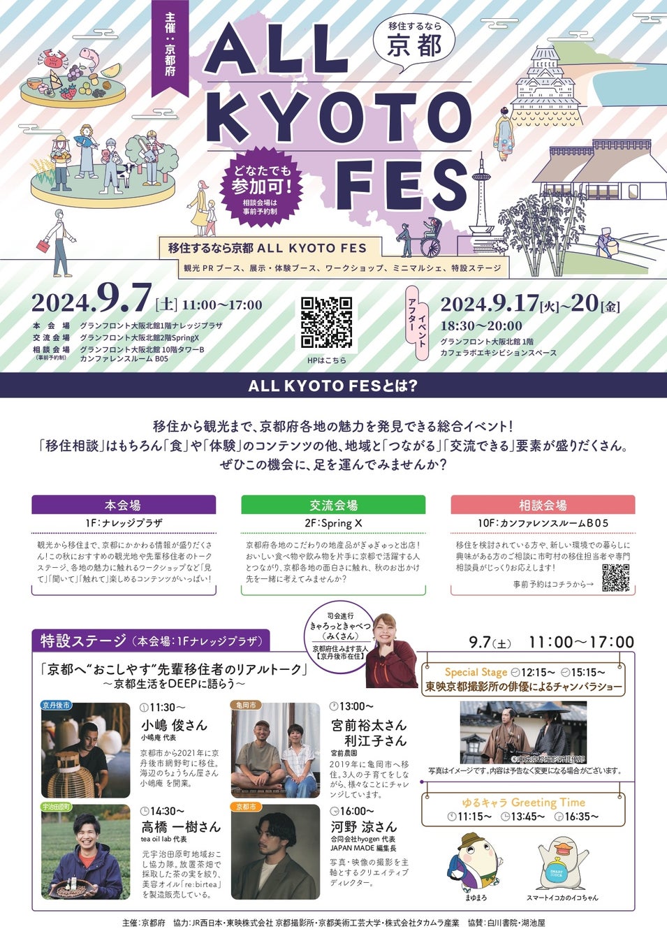 【京都府よりお知らせ】移住から観光まで京都府の魅力を発見!2024年9月7日「移住するなら京都 ALL KYOTO FES」を大阪で開催!