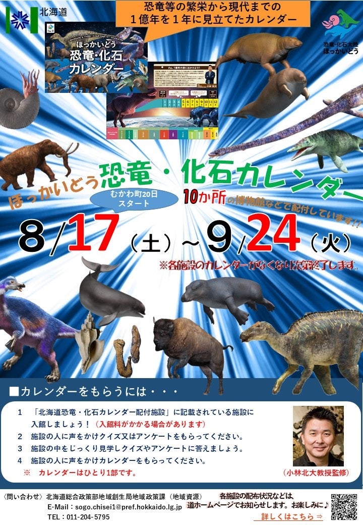 北海道「ほっかいどう恐竜・化石カレンダー」配付対象施設にて2024年9月24日までプレゼント中!