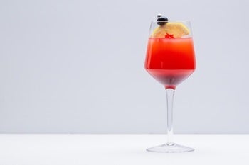 清内路の花桃街道をイメージ。鮮やかな赤色のカクテル。