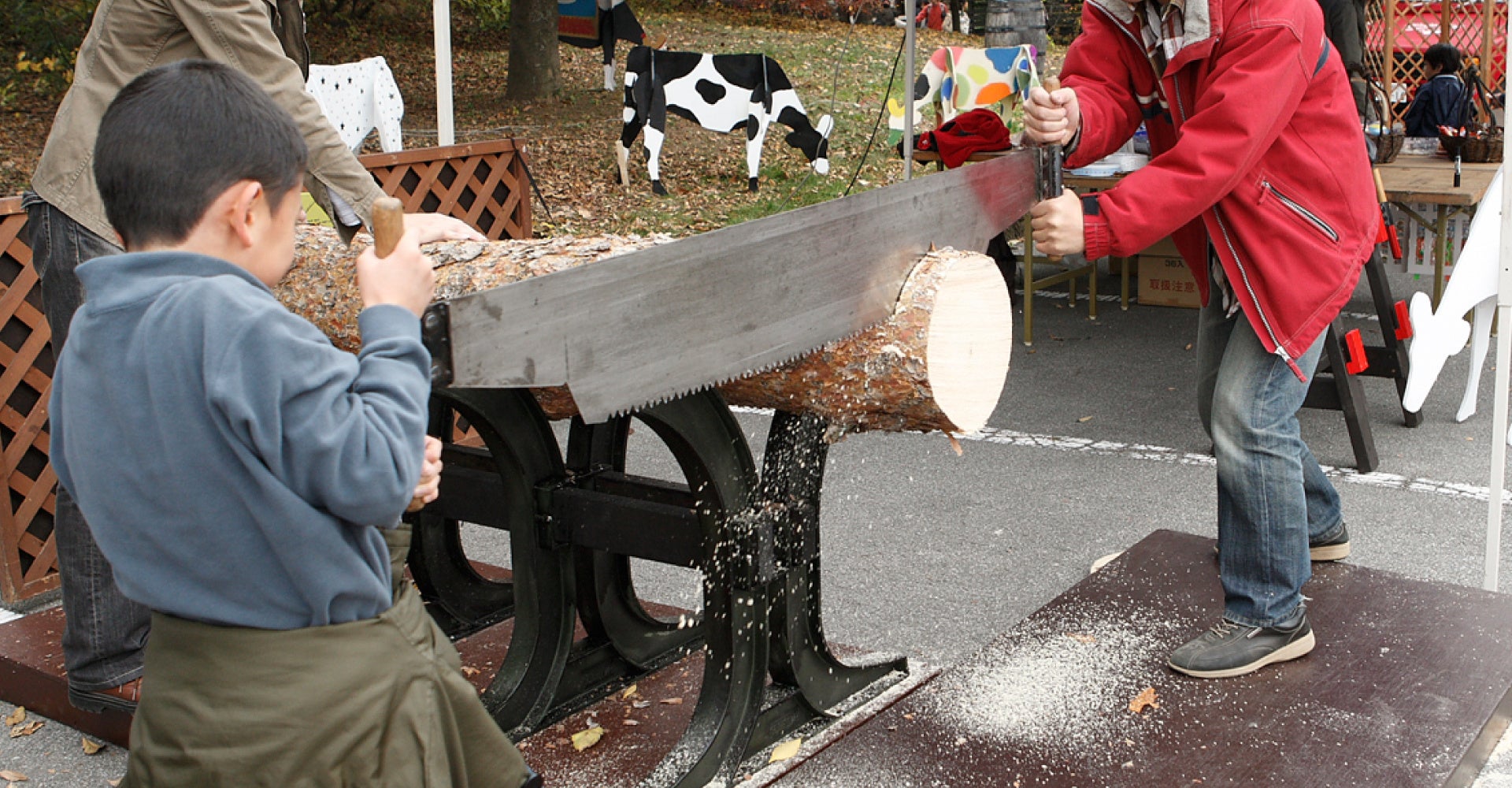 数年の時を経てあのバトルが復活!ペアで協力して両刃ノコギリをギコギコ。誰が一番早く丸太を切れるのか競います。優勝者には賞品をプレゼント!