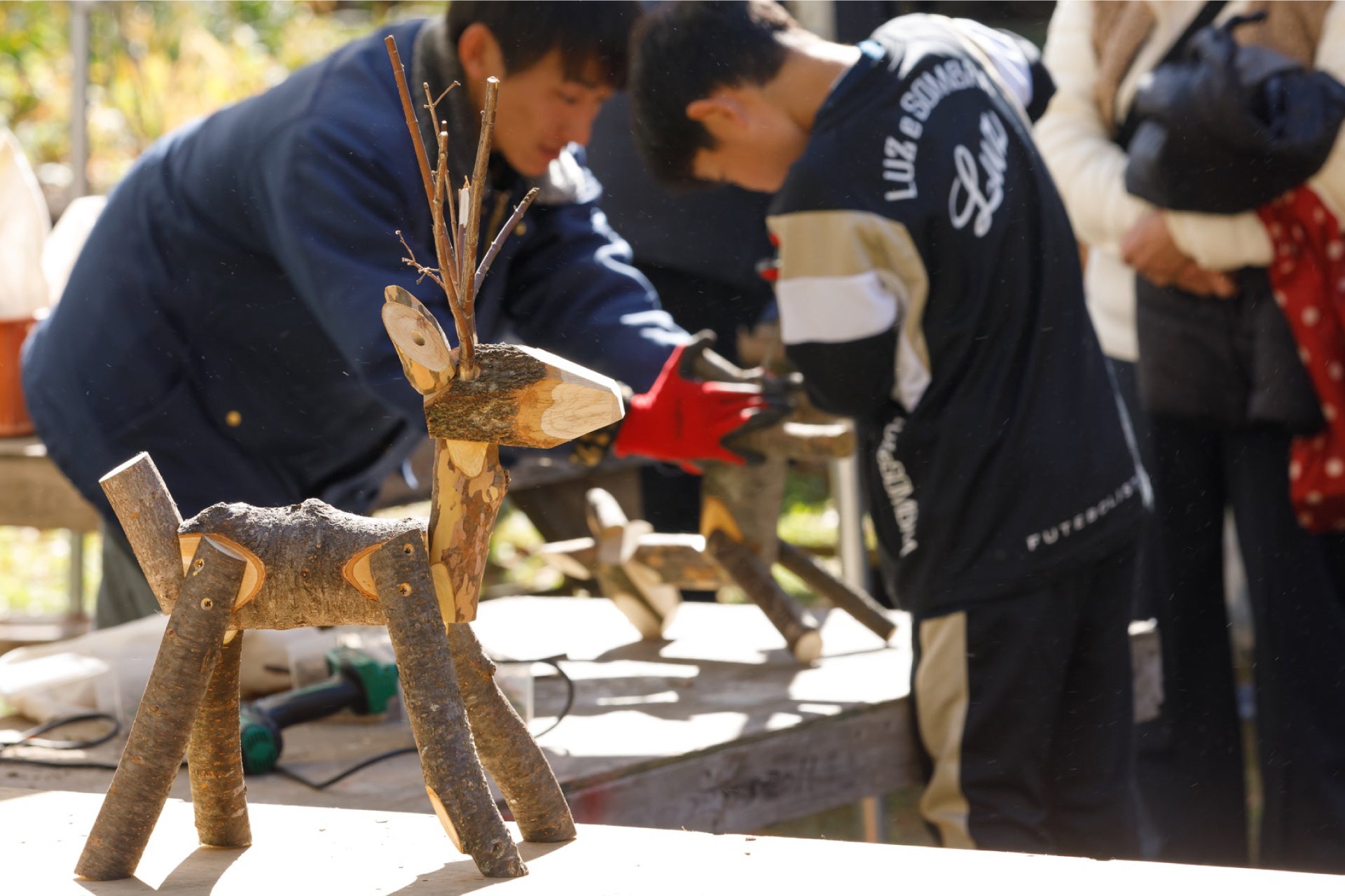 萌木の村人気のマスコット「自然木トナカイ」をインパクトドライバーで組み立てよう!同じものは1体としてありません。おうちの玄関やお庭で可愛がってくださいね。