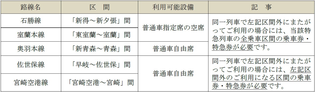 ◆以下の区間については、特例として特急列車の普通車自由席等がご利用いただけます。