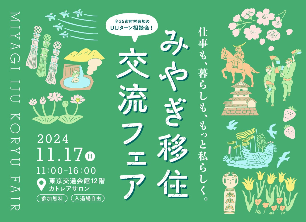 全国の自治体と連携して移住を支援する「認定NPO法人ふるさと回帰支援センター」は、11月17日(日)に移住イベント「みやぎ移住・交流フェア2024」を、宮城県と共催にて開催します。