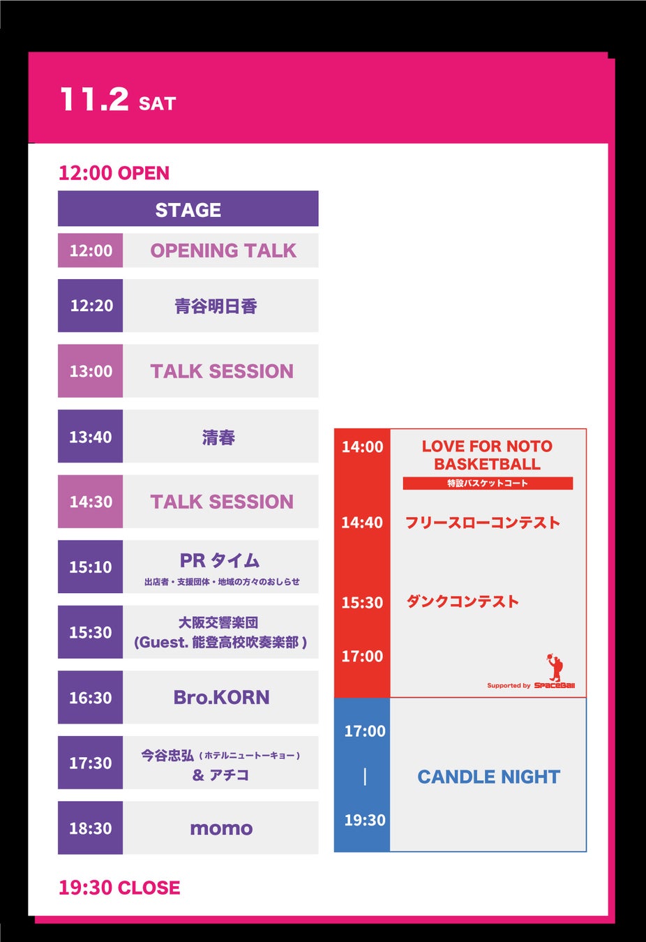 日 程:2024年11月2日(土) 12:00−19:30 ※雨天決行、荒天中止