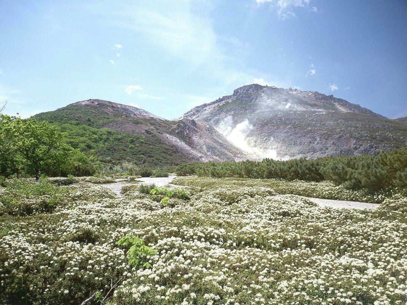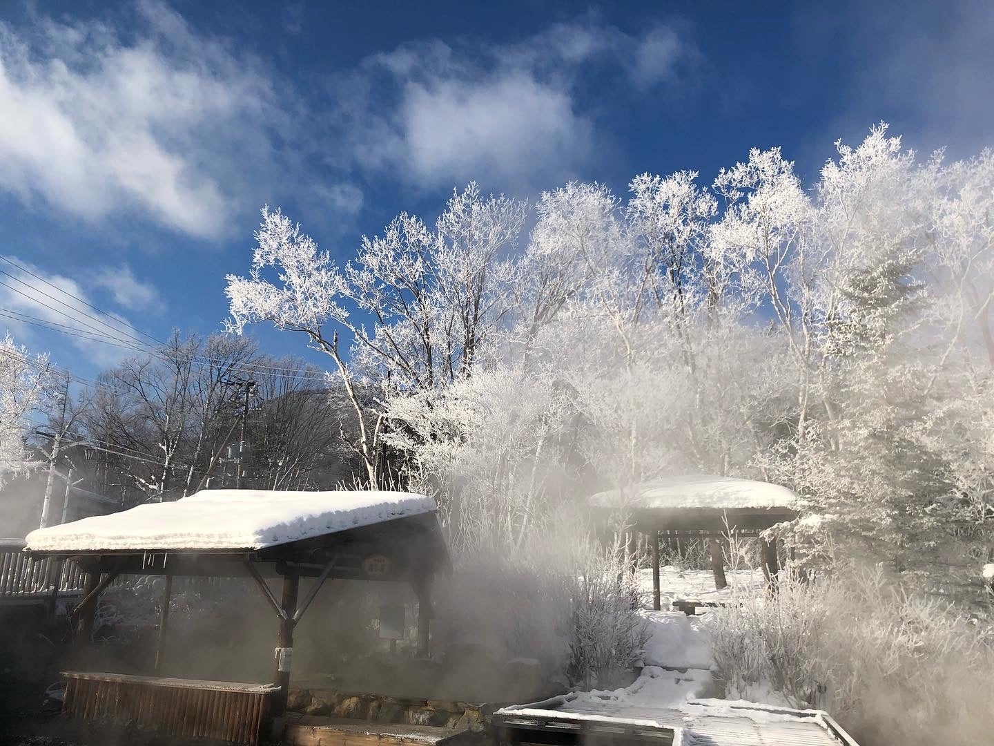 冬には湯けむりが木の枝先に氷の結晶を葉につけ、幻想的な景色が生まれる