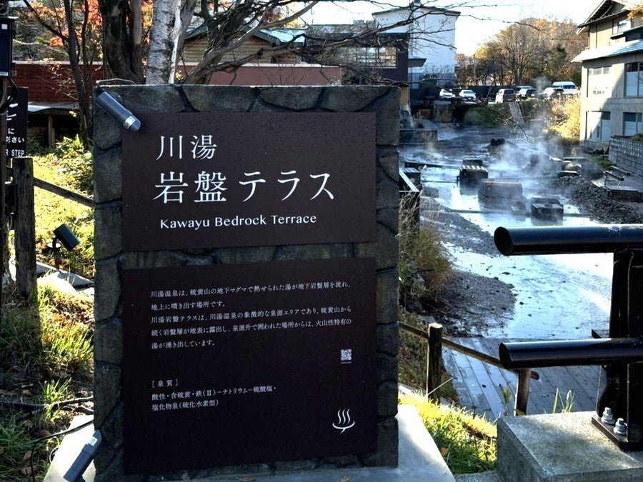 この岩盤エリアには温泉街の各宿泊施設の泉源が数多くあり、川湯温泉の豊富な湯量を感じる。今回の岩盤エリアと従来の遊歩道を合わせると約200メートルの温泉川を散策可能となりライトアップされた遊歩道で飲食店やお土産・ビジターセンター・足湯など温泉街の街歩きに利用してほしい。