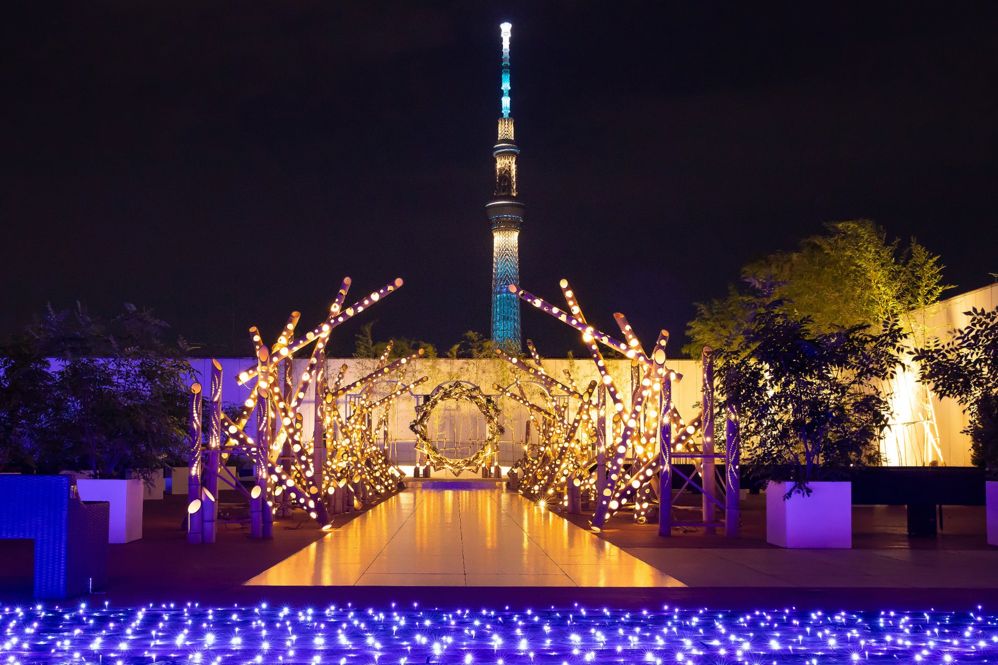 東武グループのホテルである、東武ホテルレバント東京では、CHIKAKENの三城 賢士 氏のプロデュースによる「竹あかり」を東京スカイツリーと共にご観覧いただけます。竹と光が織りなす幻想的なイルミネーションと共にお楽しみください。詳細は下記のホームページよりご覧ください。
