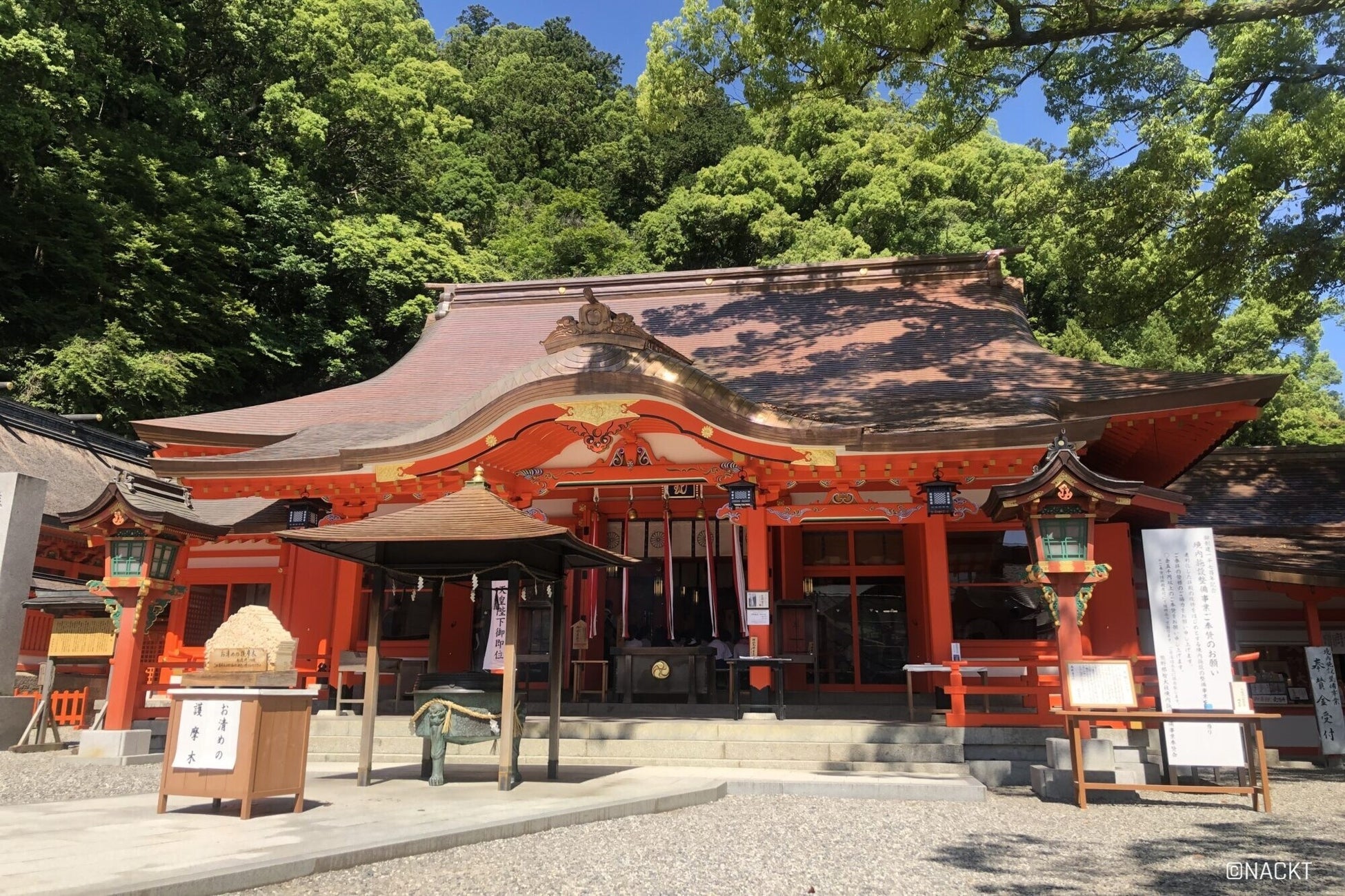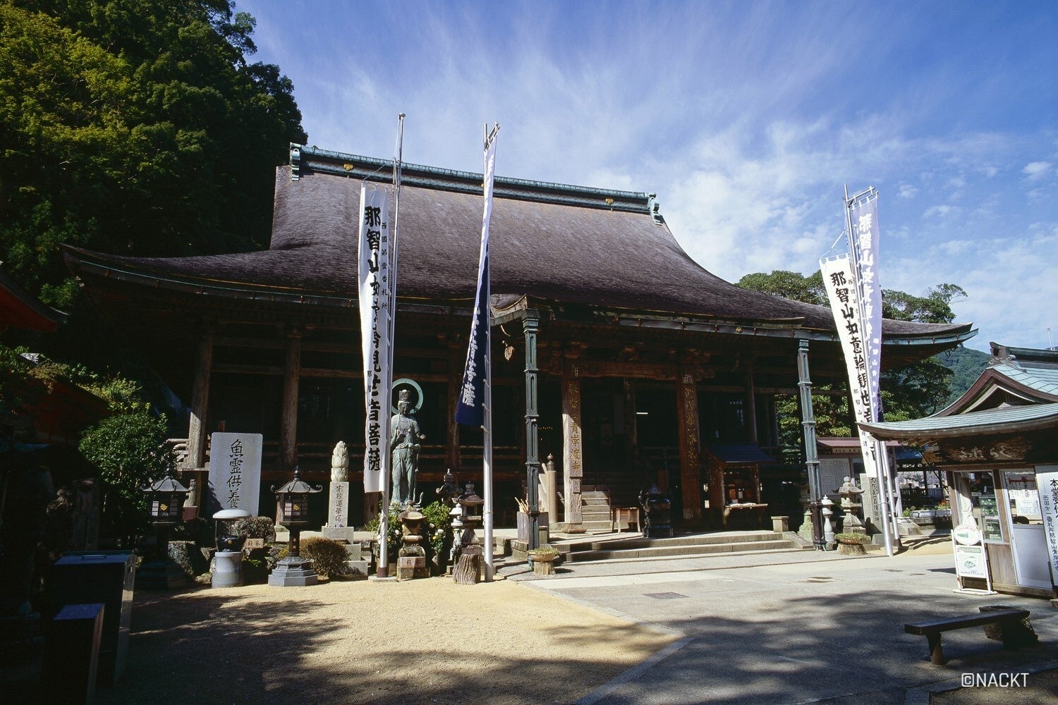 熊野那智大社は熊野三山の一社で、全国にある熊野神社の御本社です 山の緑に6棟からなる朱塗りの社殿や礼殿が映え、神聖な雰囲気が漂います