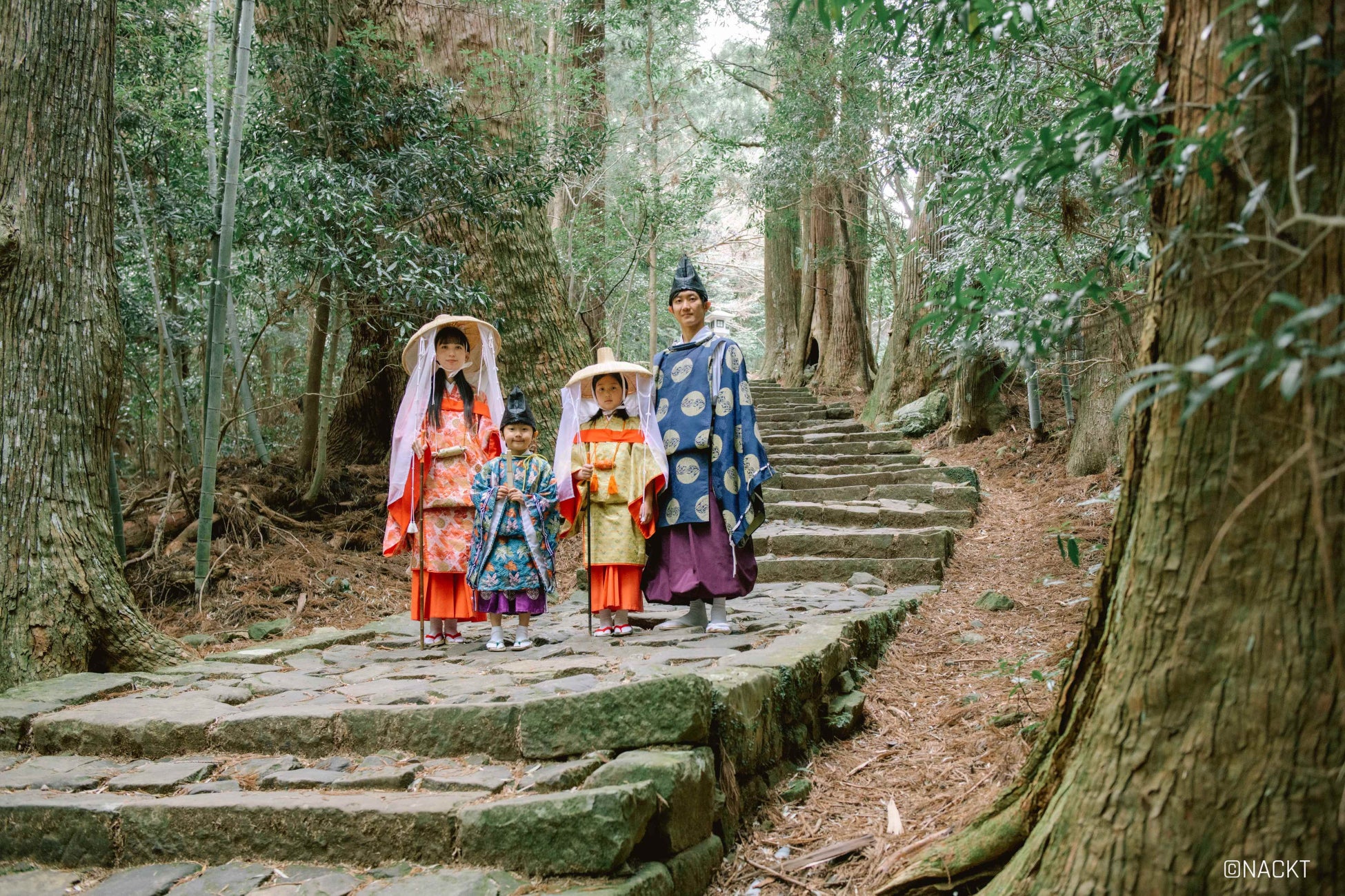 田辺から山中に分け入り熊野本宮に向かう「中辺路(なかへち)」。平安時代から鎌倉時代に皇族や貴族など最も多くの参詣者が歩いたとされています。その平安衣装を着て大門坂を歩きます(衣装着用歩行約1km)。霊場をめぐり、パワースポットの那智の滝でエネルギーをチャージします。
