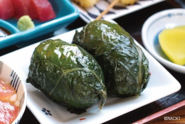 おにぎりを浅漬けの高菜の葉で包んだシンプルな伝統郷土料理 大きな口をあけて、目を張らないと食べられない大きさから「めはり寿司」と名がつきました