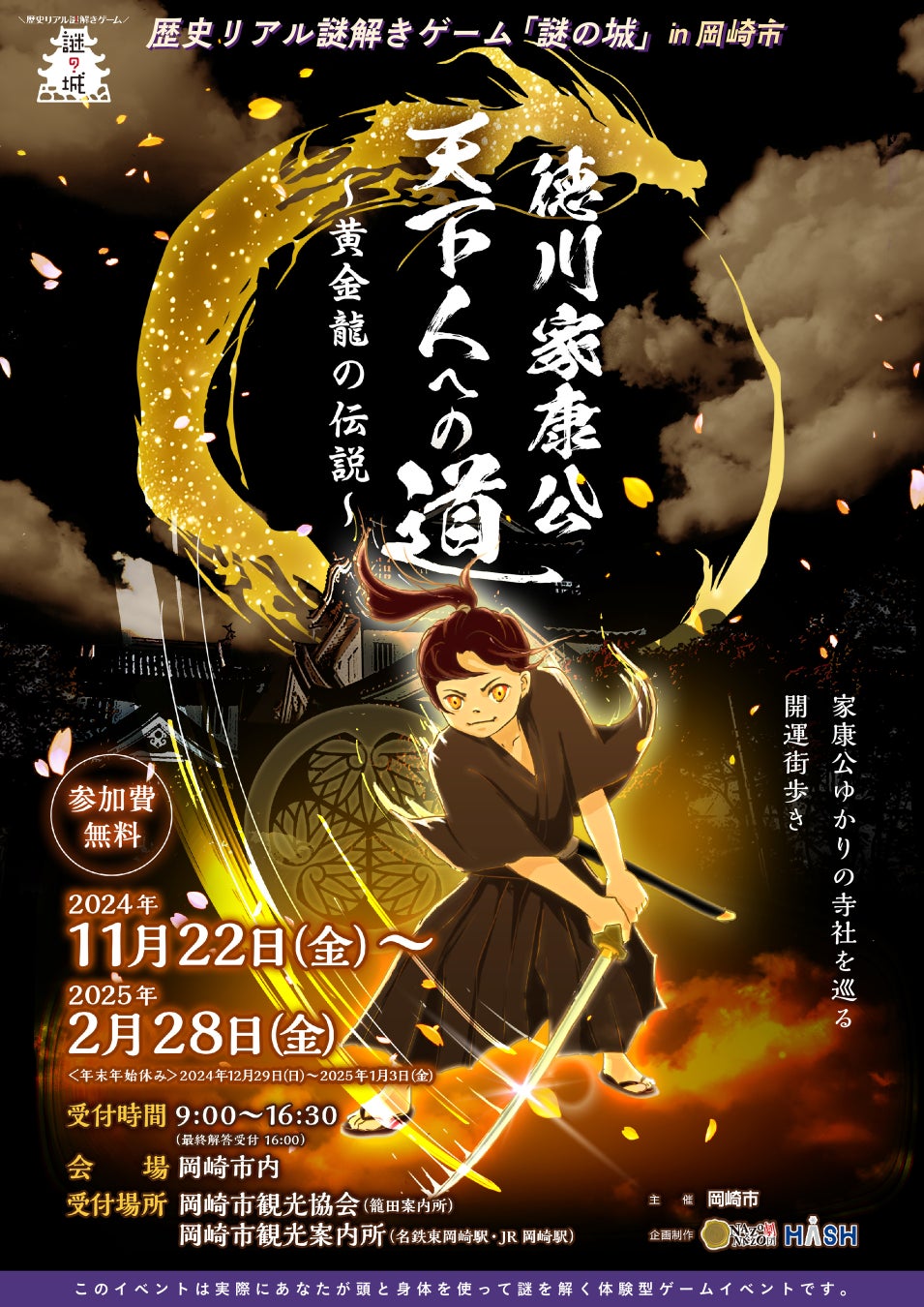 愛知県岡崎市 歴史リアル謎解きゲーム「徳川家康公 天下人への道~黄金龍の伝説~」2025年2月28日まで開催中!