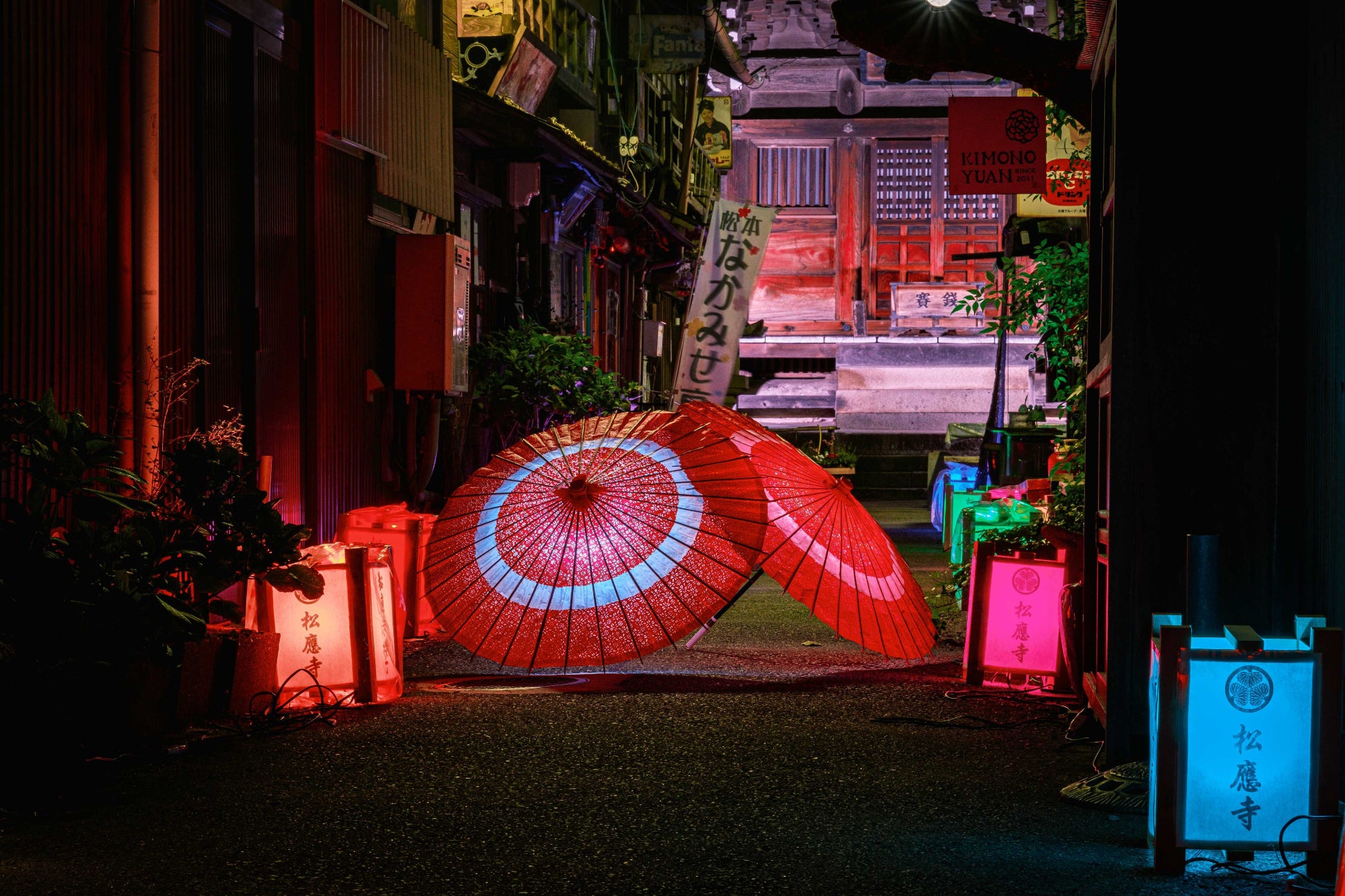 ・道中:LED オブジェクトや和傘を使用したフォトスポットの設置