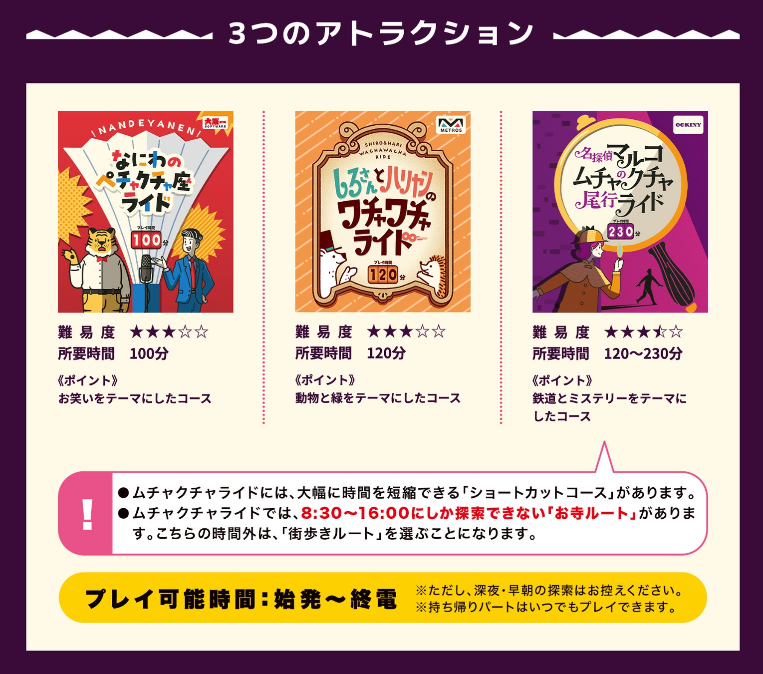 ※制限時間なし 1日でも複数日でもじっくり楽しめます。(ただし、キットに附属の専用1日乗車券は、1日しか有効ではございませんので、翌日以降もプレイされる場合は、別途乗車運賃をお支払いください)