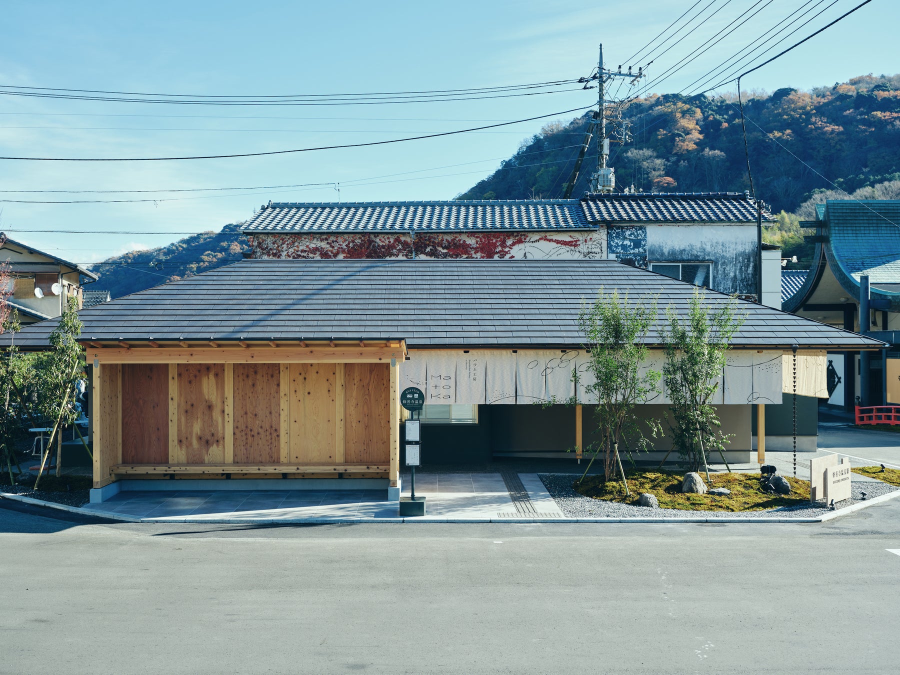 バスのりばに併設するお店の名前は「MatoKa」(まとか)。修善寺温泉の雰囲気を汲んだ和の趣のあるバウムクーヘンをイートイン・テイクアウトで提供するバウムクーヘン工房・カフェです。修善寺温泉の持つ穏やかさや安らかさの意味を持ちバウムクーヘンの円形とも重なる「円か」(まとか)と、ゆったりとした「時間」や「空間」と、そこで楽しむ「菓子」という意味の「間と菓」を重ね合わせた名称としています。